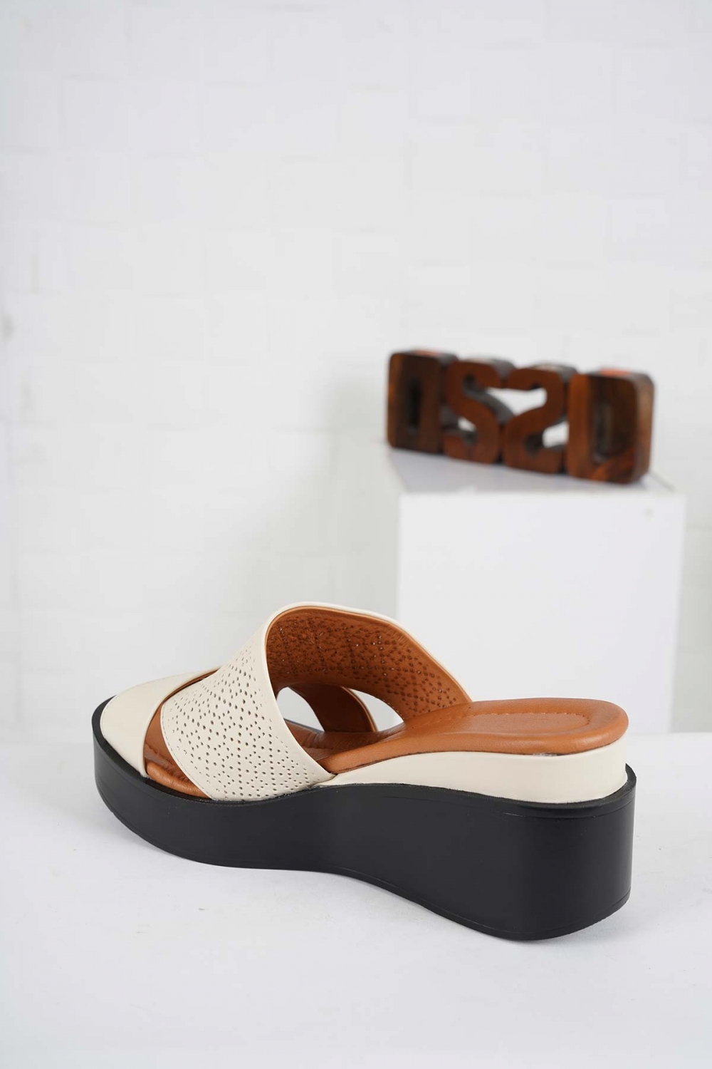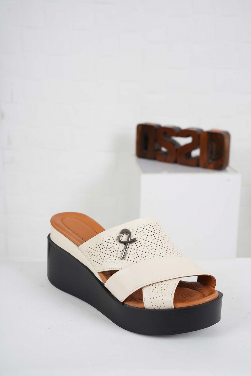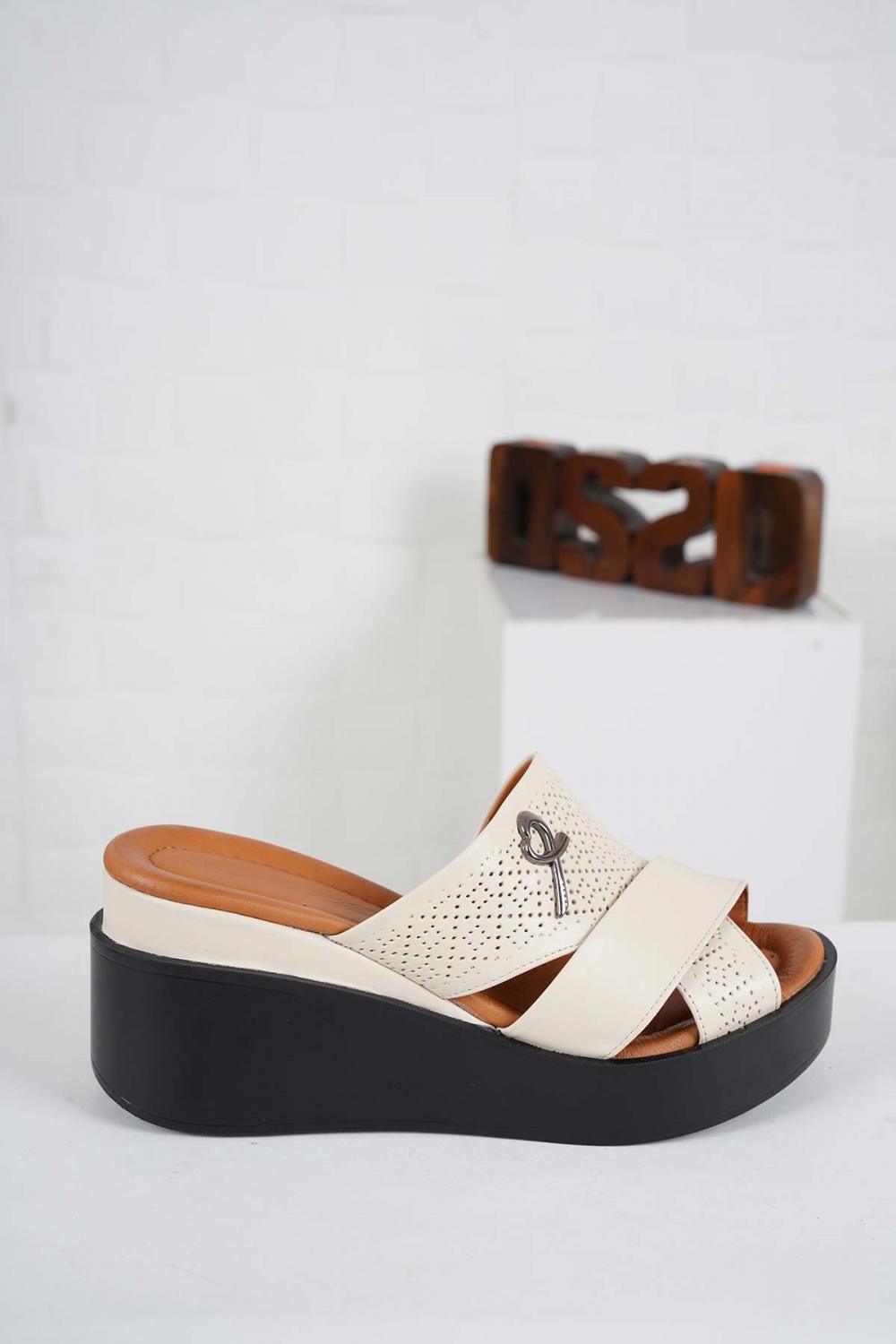 Hakiki Deri Bej Kadın Dolgu Topuklu Terlik 231229609
