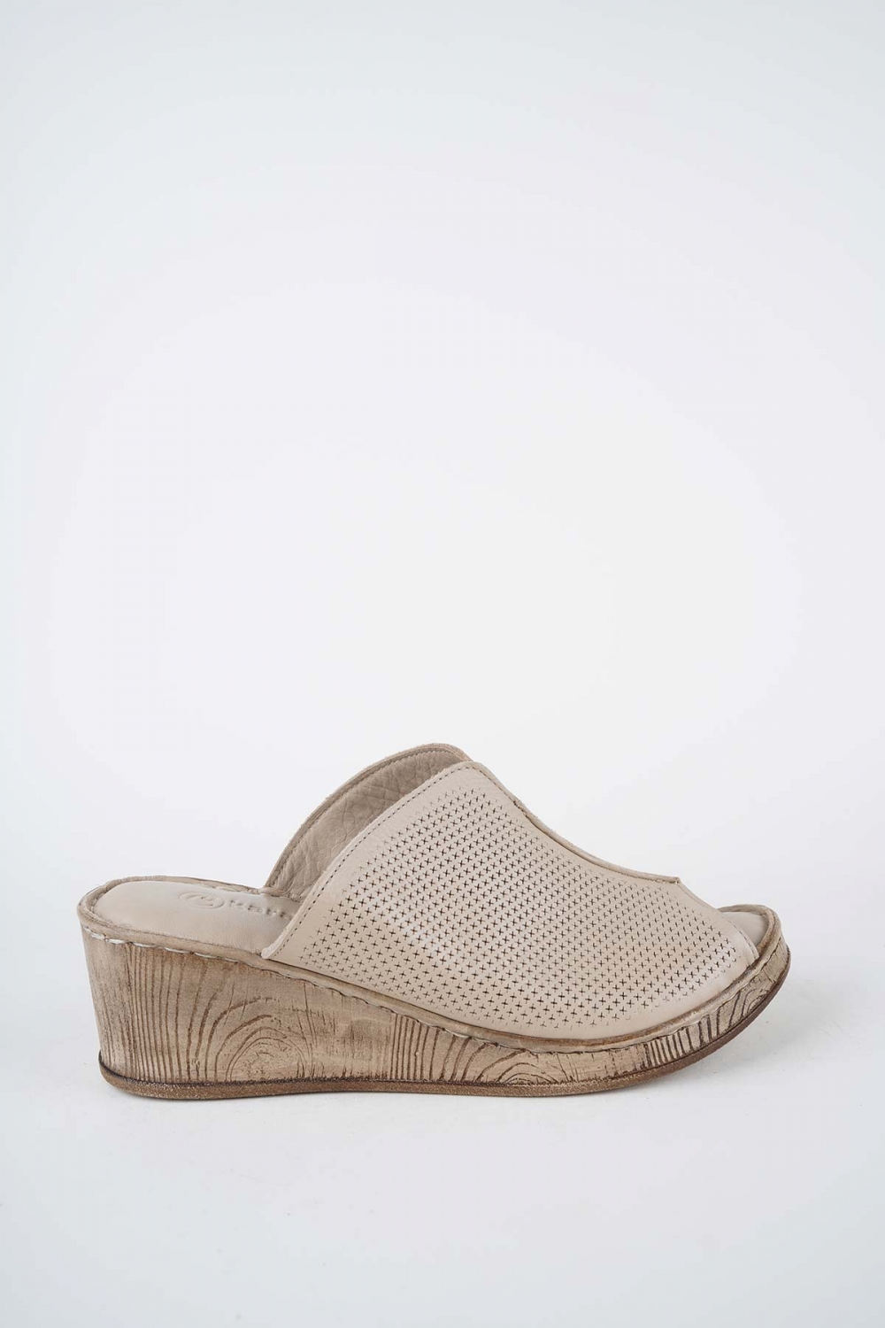 Hakiki Deri Bej Kadın Dolgu Topuklu Terlik 261245601