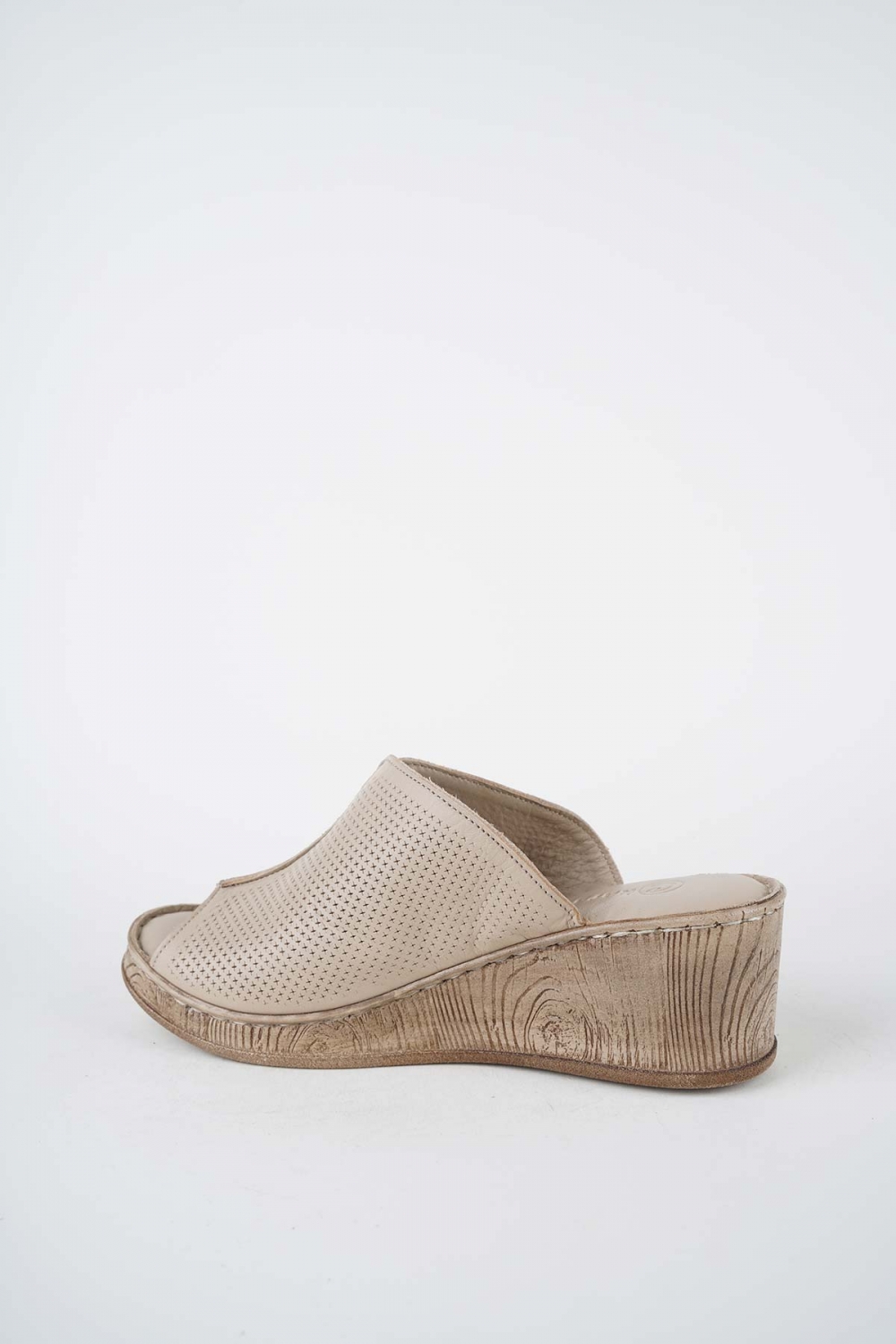 Hakiki Deri Bej Kadın Dolgu Topuklu Terlik 261245601
