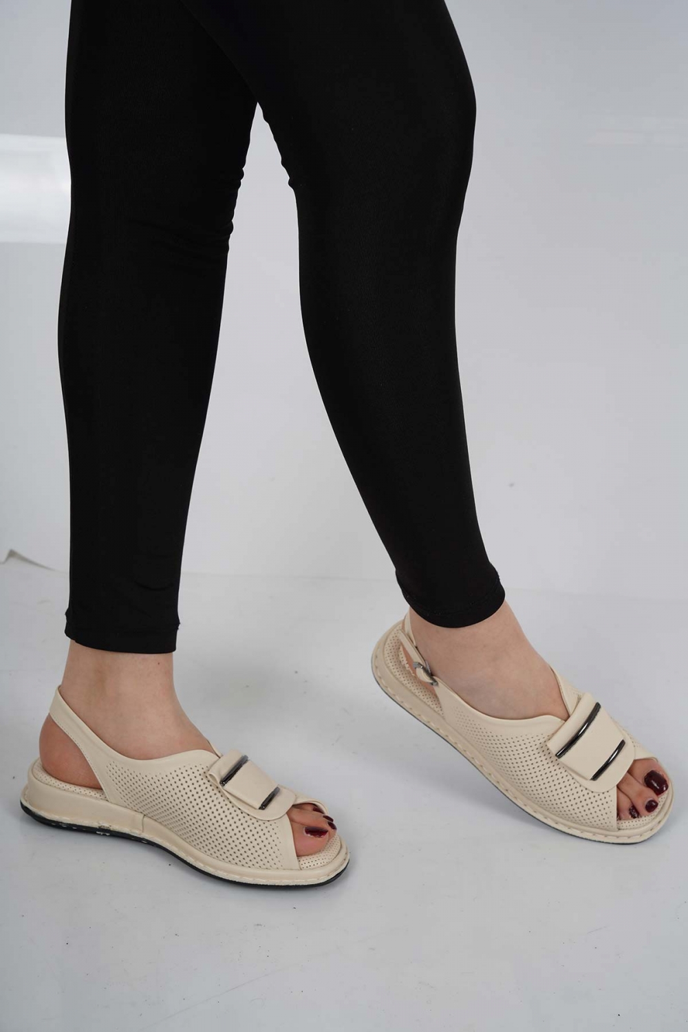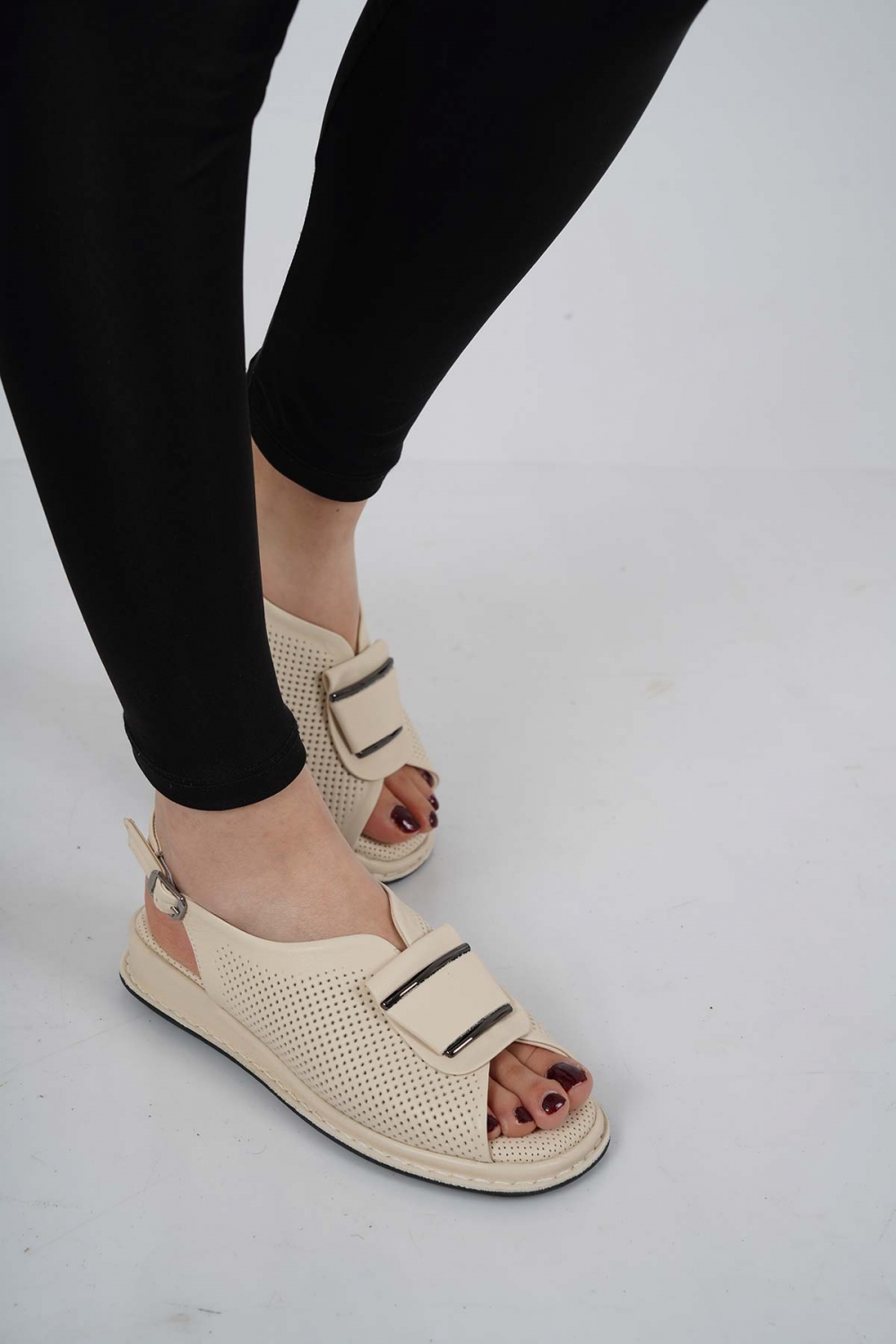 Hakiki Deri Bej Kadın Düz Sandalet 231100501