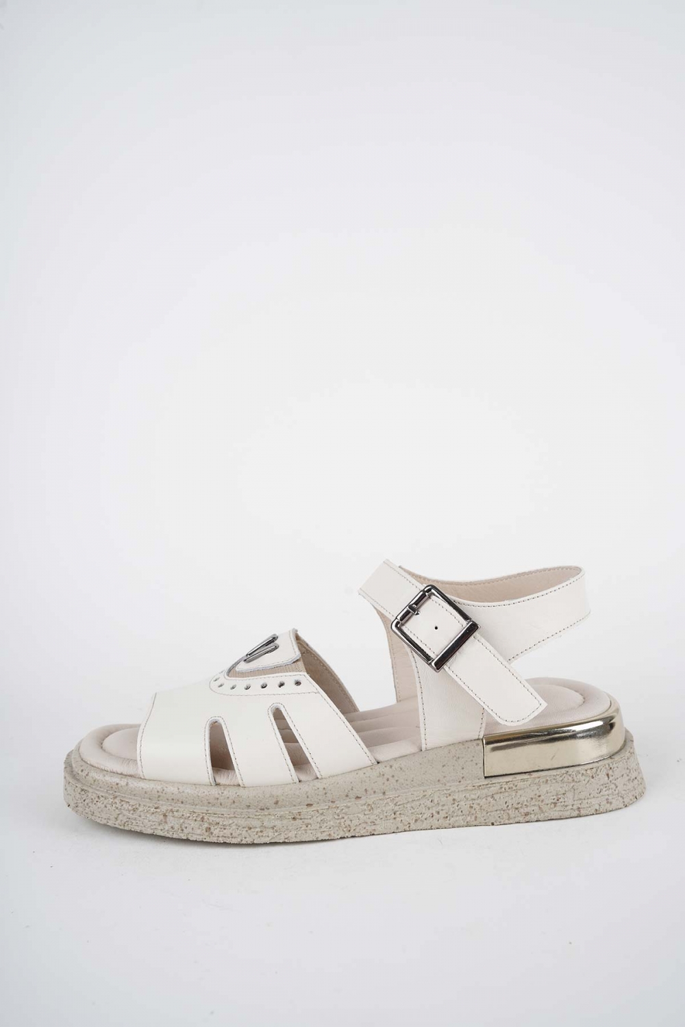 Hakiki Deri Bej Kadın Düz Sandalet 261118504