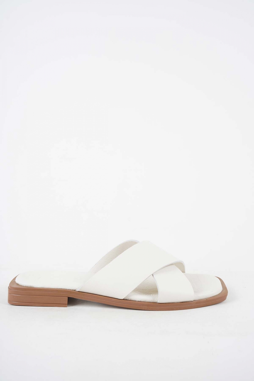 Hakiki Deri Bej Kadın Düz Terlik 251103611