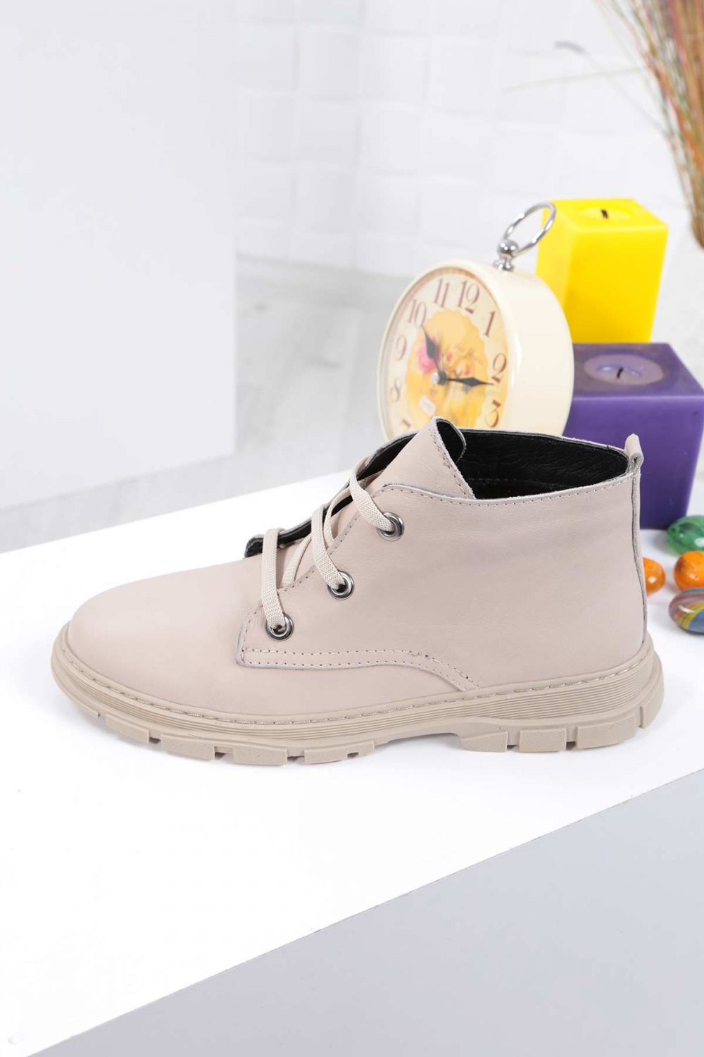 Hakiki Deri Bej Kadın Kısa Bot 212135204
