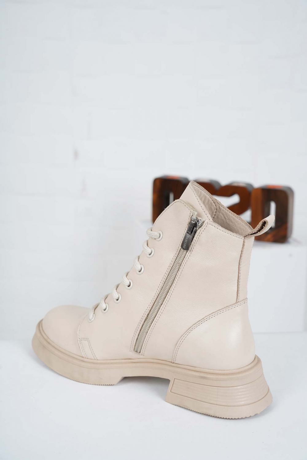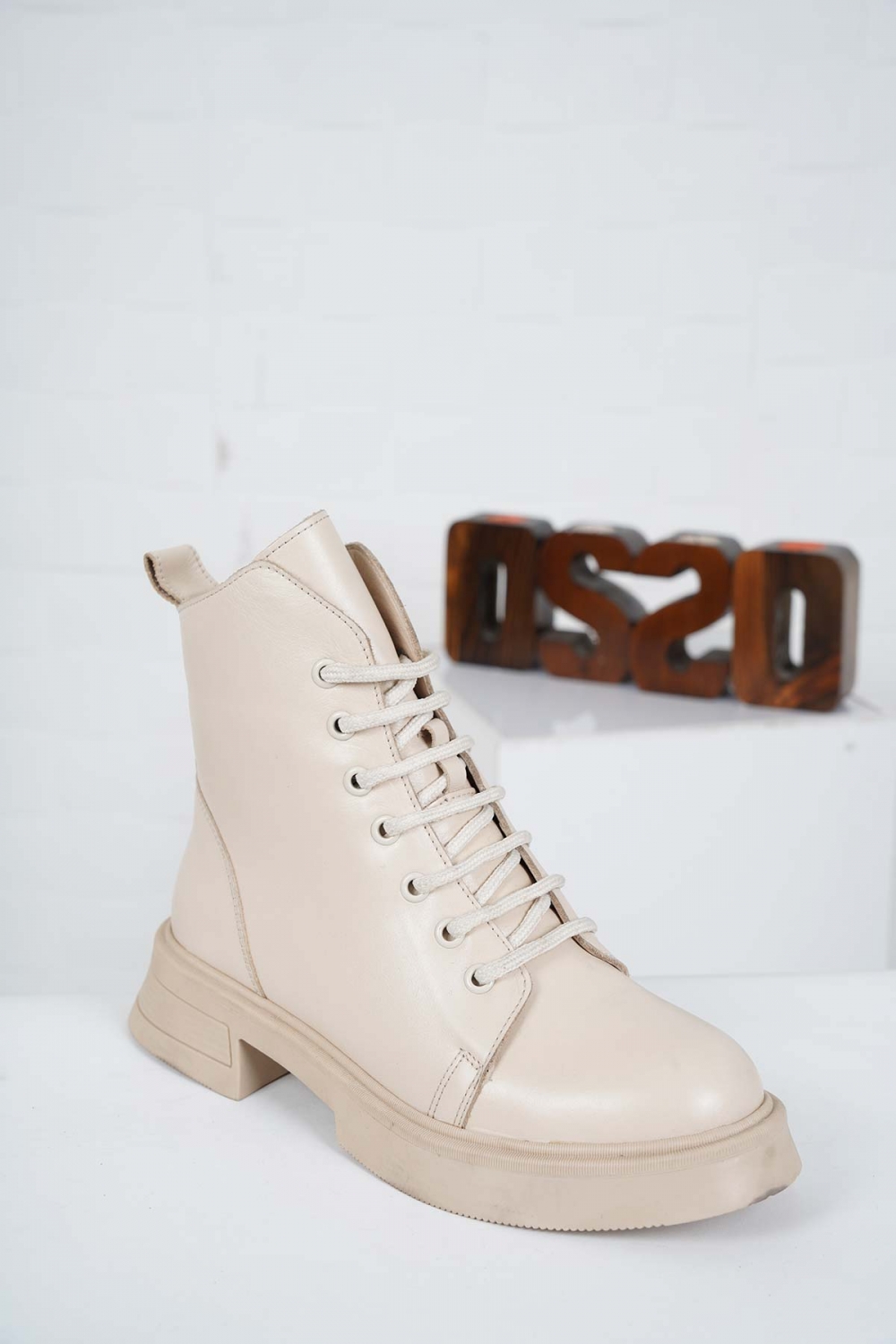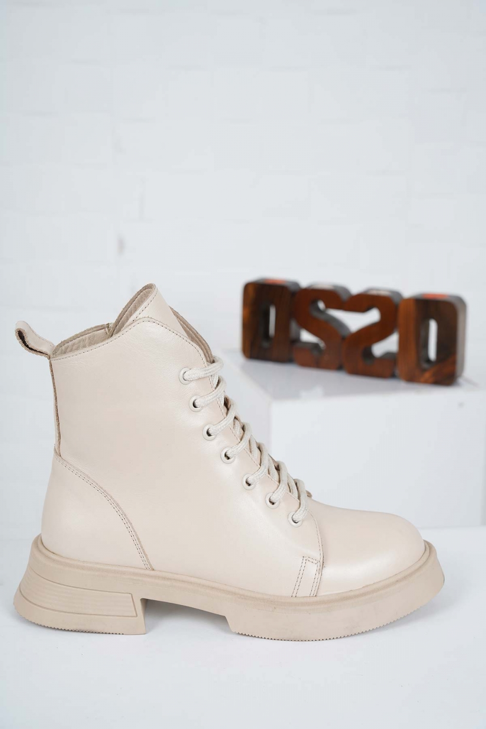 Hakiki Deri Bej Kadın Kısa Bot 222172203