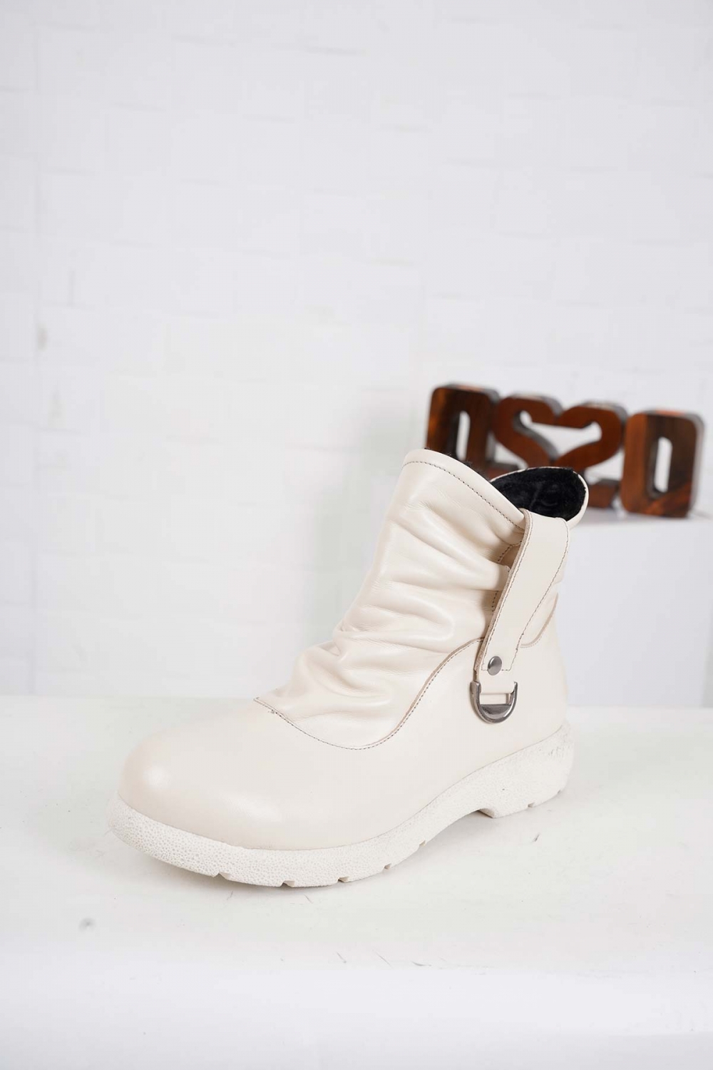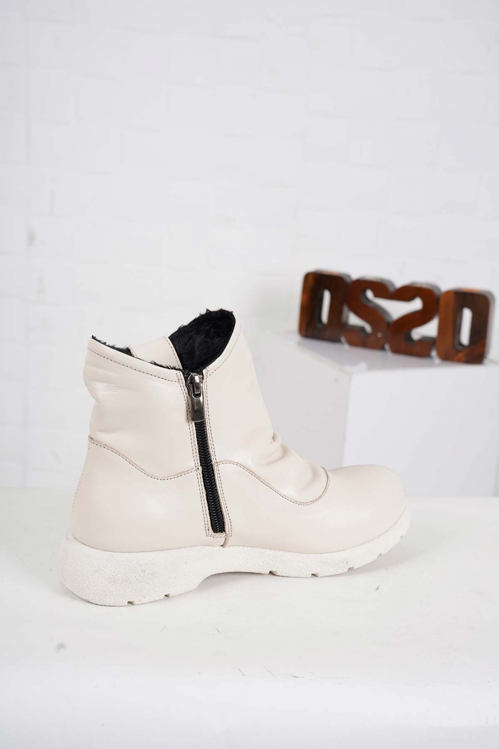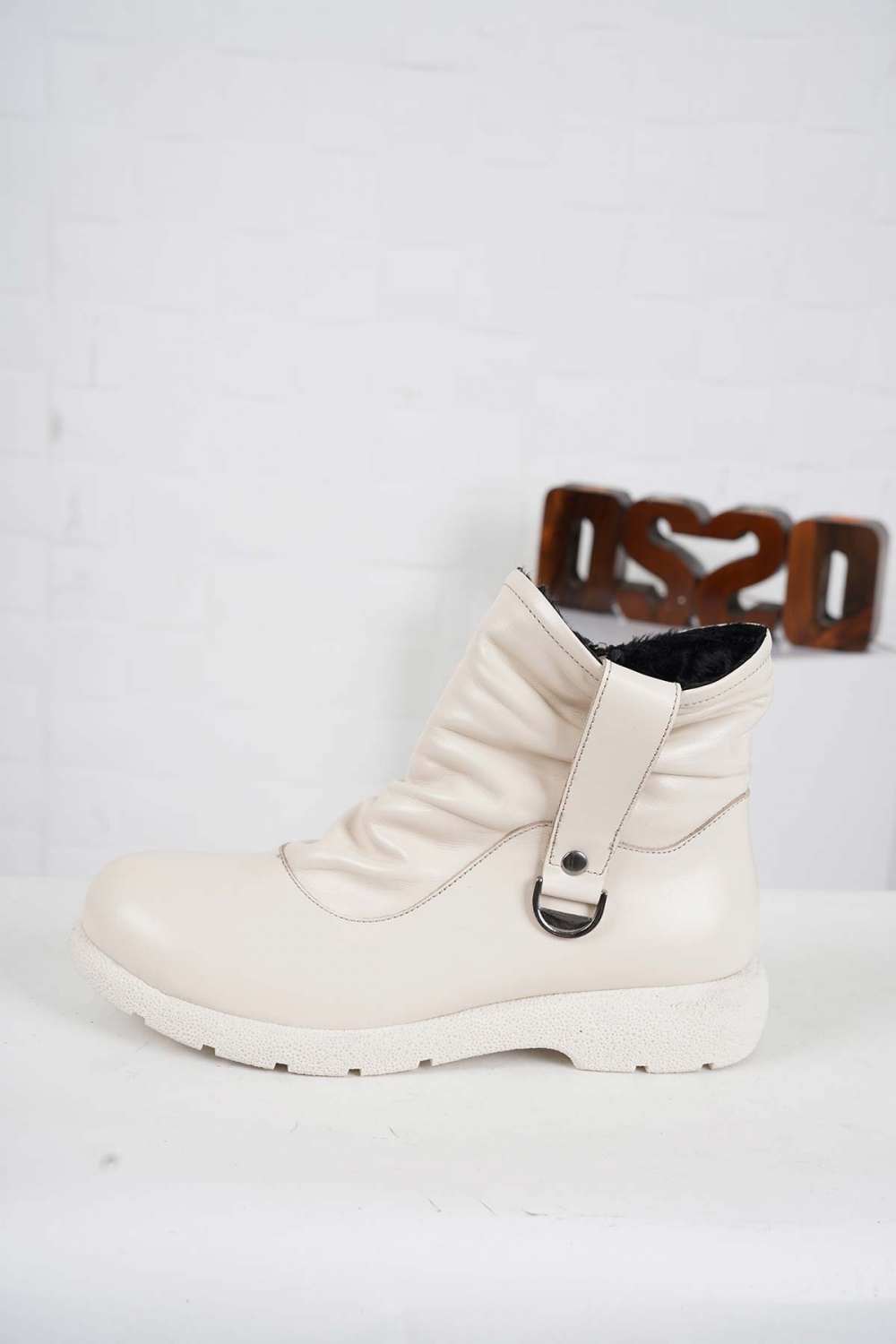 Hakiki Deri Bej Kadın Kısa Bot 242177201