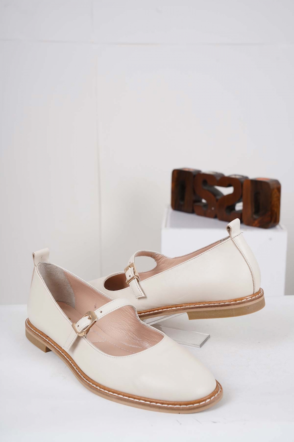 Hakiki Deri Bej Kadın Klasik Ayakkabı 241127114