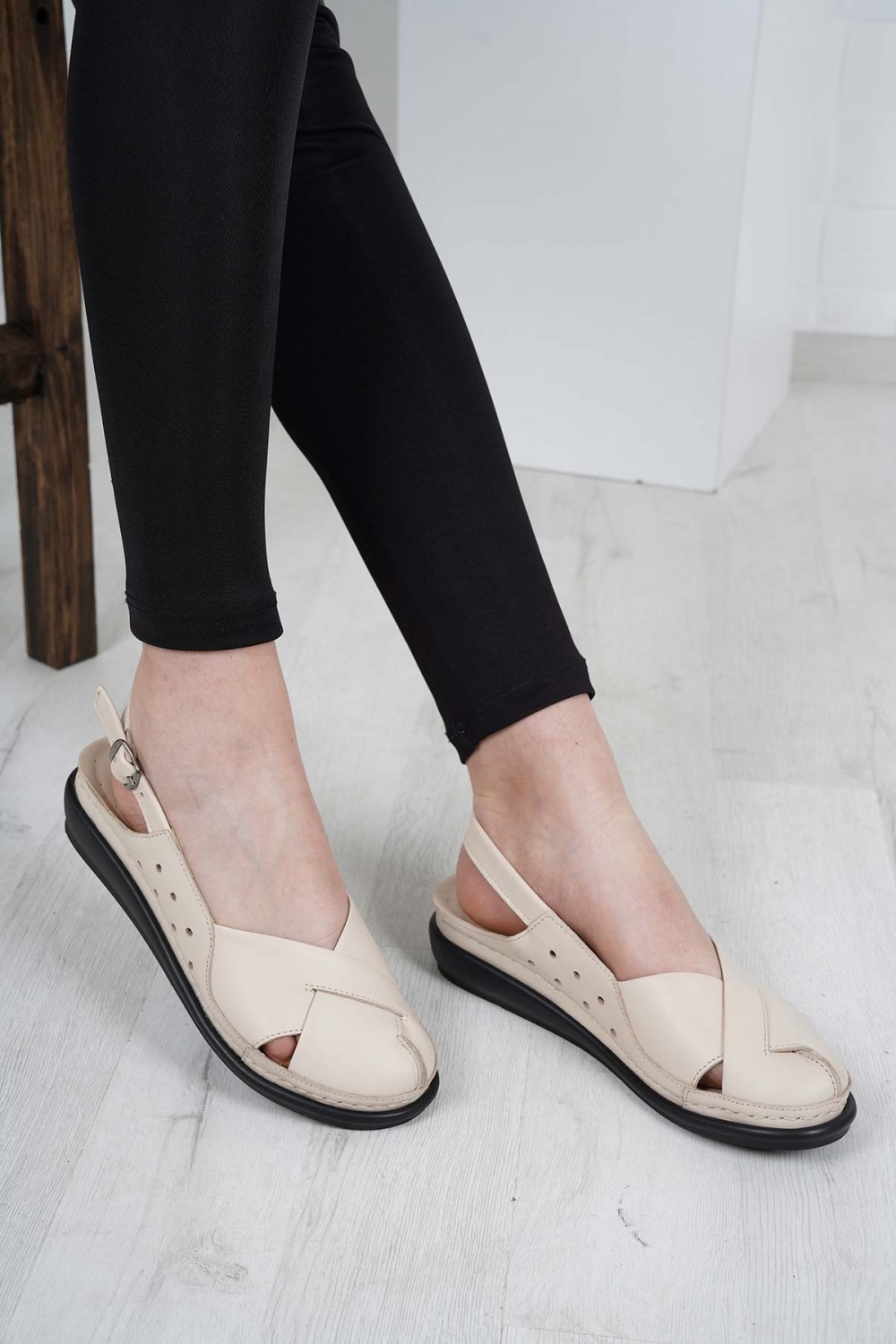 Hakiki Deri Bej Kadın Komfort Sandalet 231177505