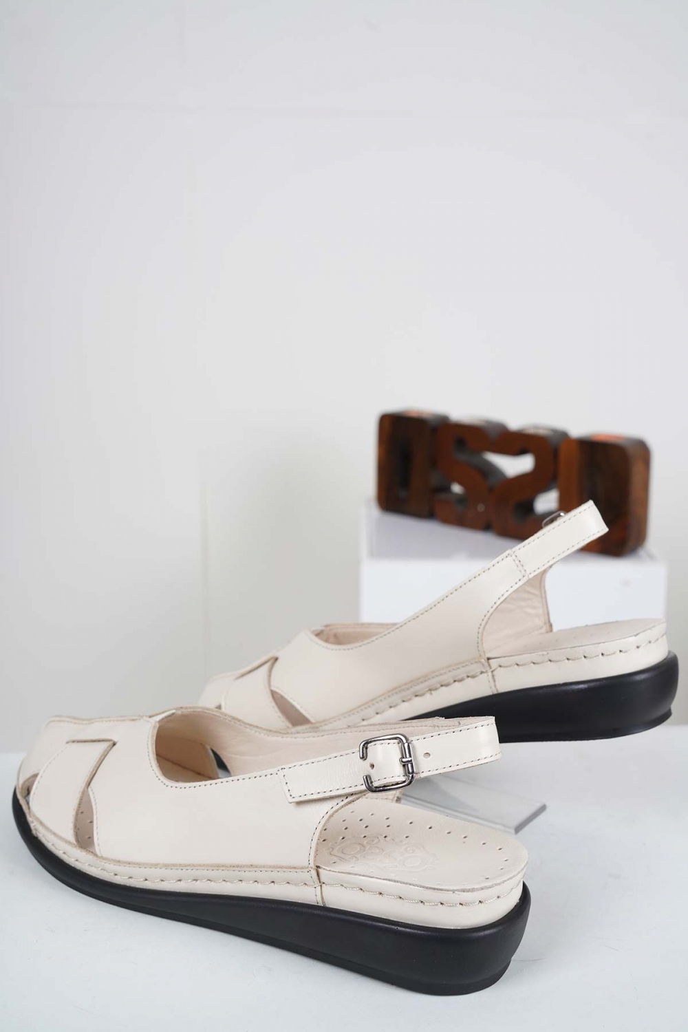 Hakiki Deri Bej Kadın Komfort Sandalet 241177503