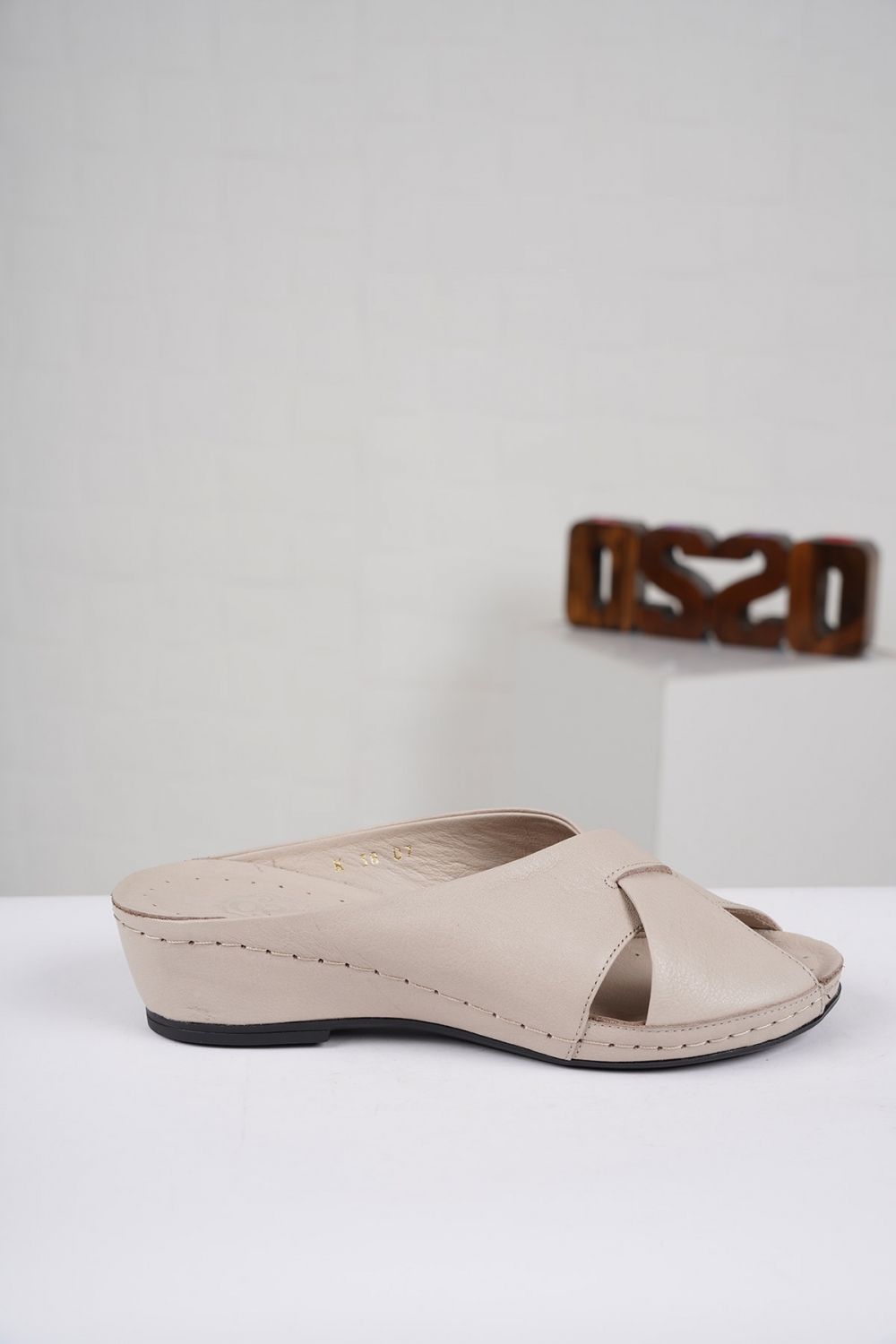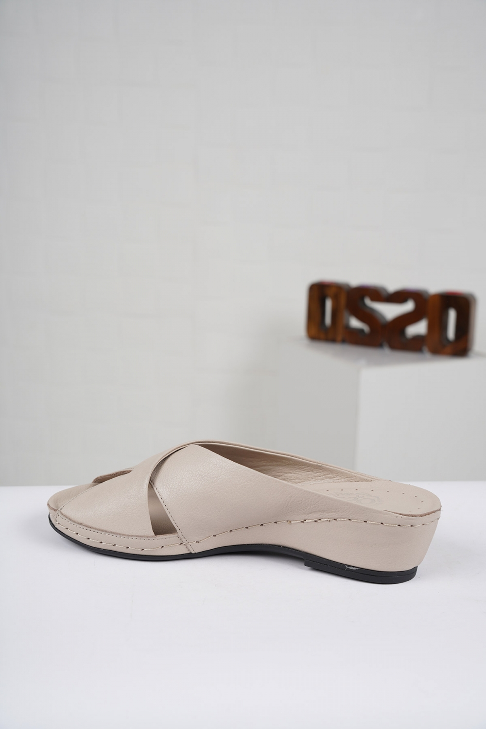 Hakiki Deri Bej Kadın Komfort Terlik 221177601