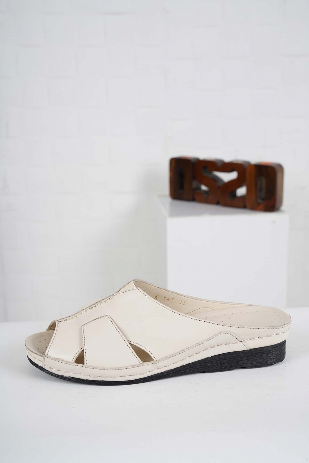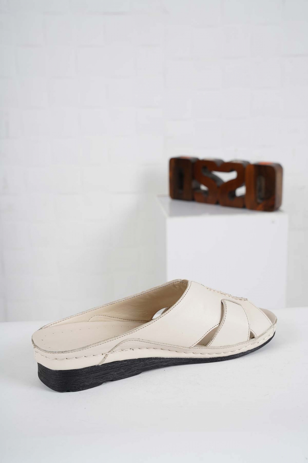 Hakiki Deri Bej Kadın Komfort Terlik 241177602