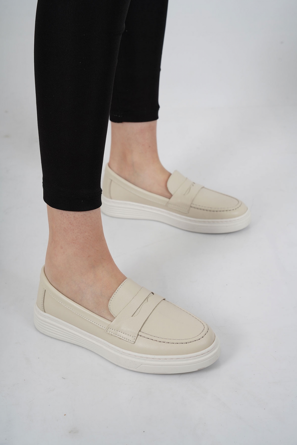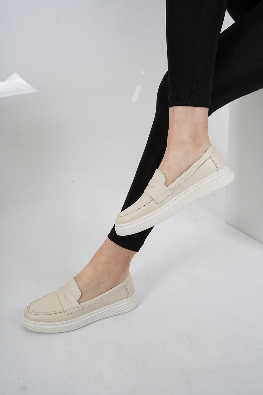 Hakiki Deri Bej Kadın Makosen Ayakkabı 221108108