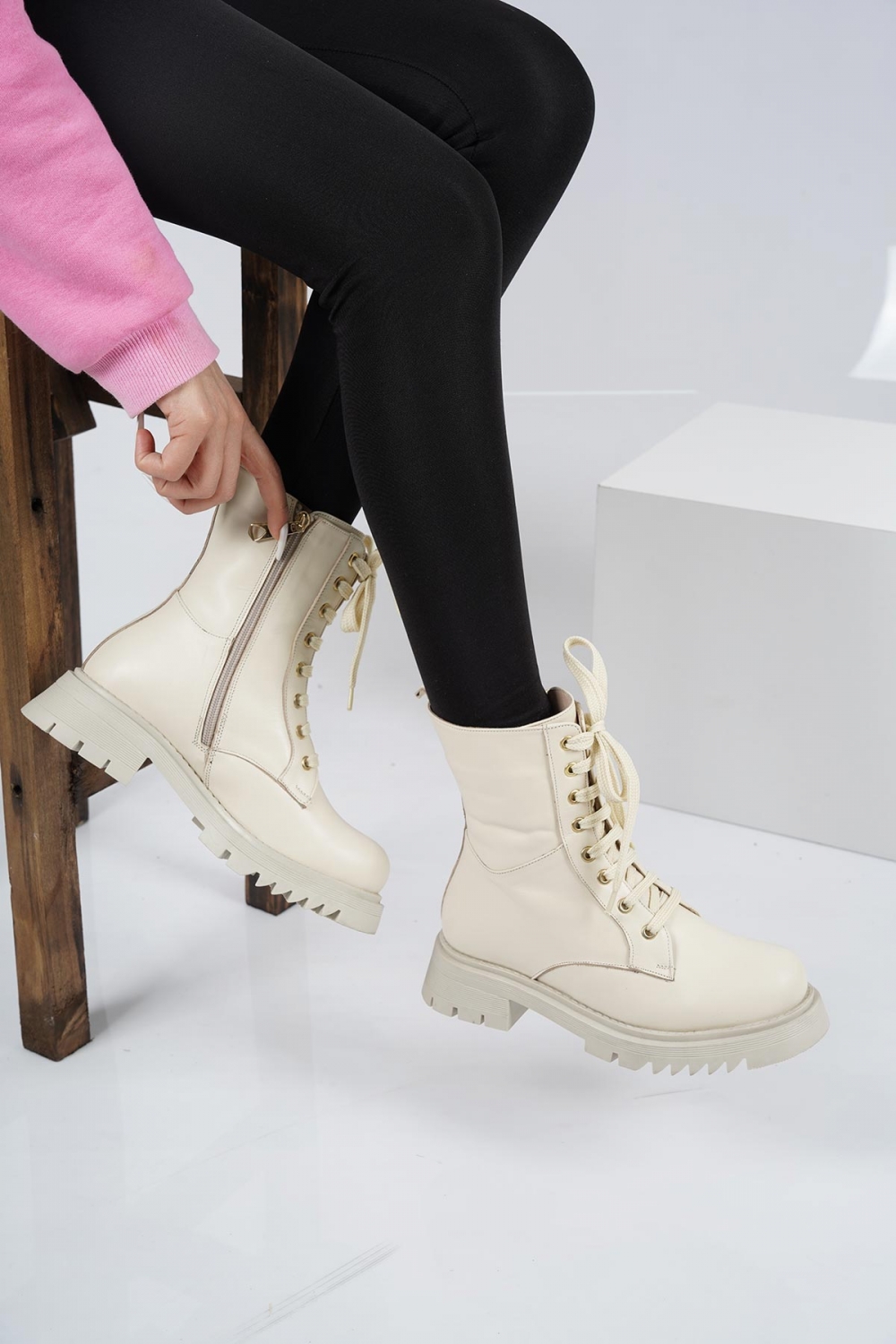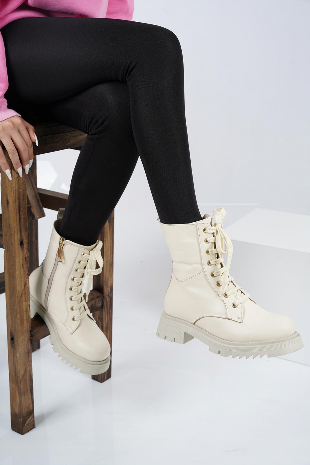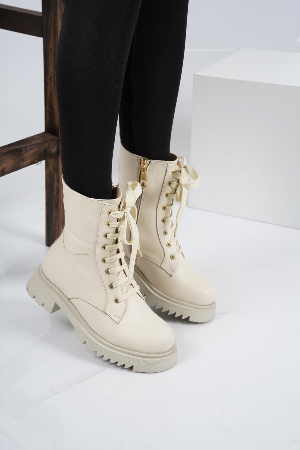 Hakiki Deri Bej Kadın Postal Bot 212127201