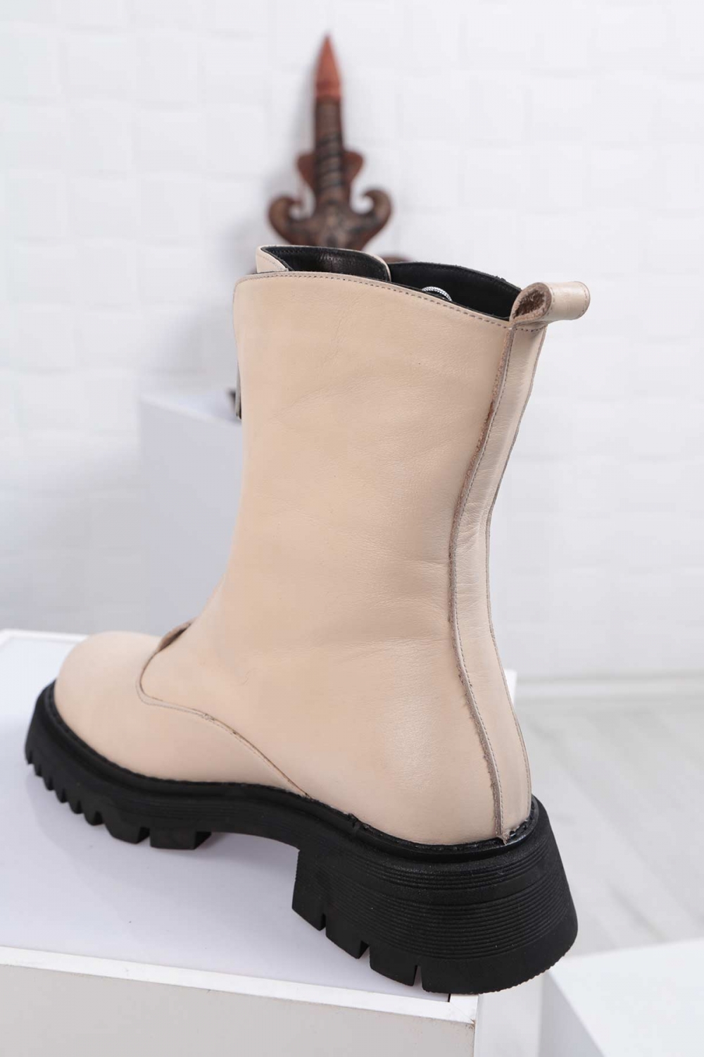 Hakiki Deri Bej Kadın Postal Bot 212127204