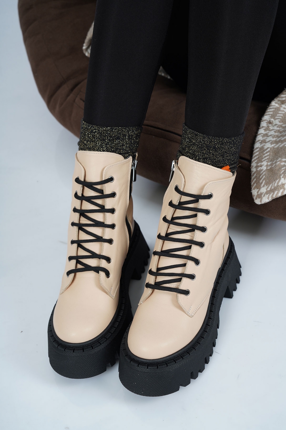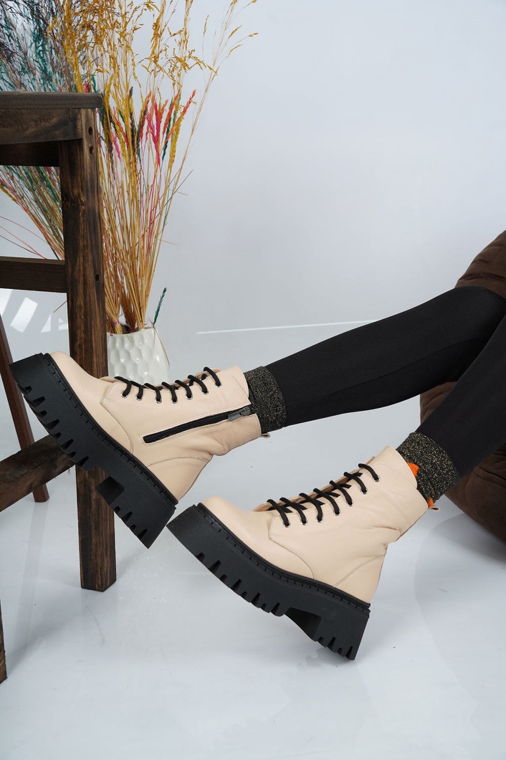 Hakiki Deri Bej Kadın Postal Bot 222108208