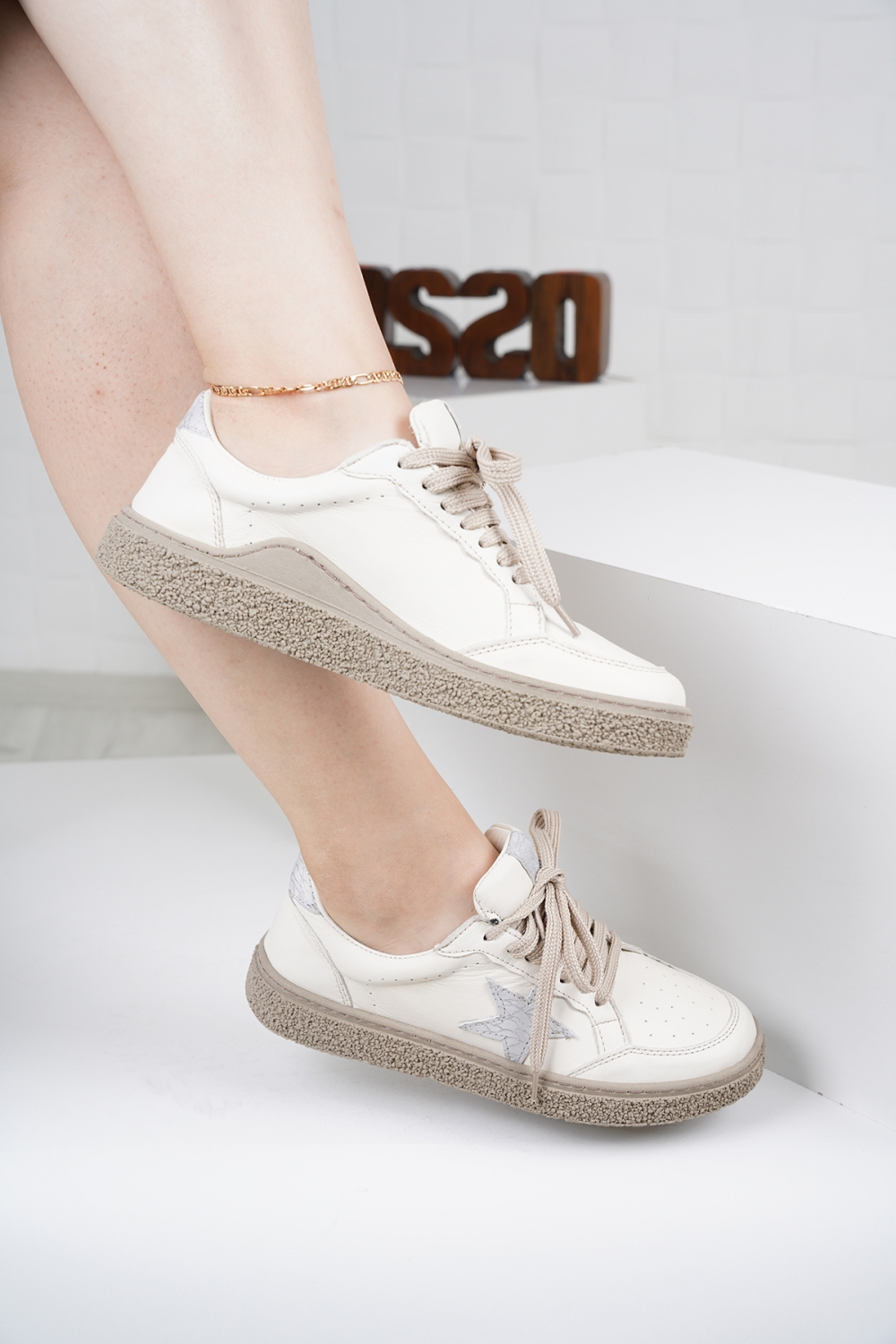 Hakiki Deri Bej Flt. Kadın Sneaker Ayakkabı 252114102