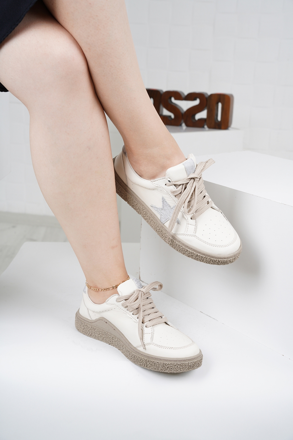 Hakiki Deri Bej Kadın Spor Ayakkabı 222220101