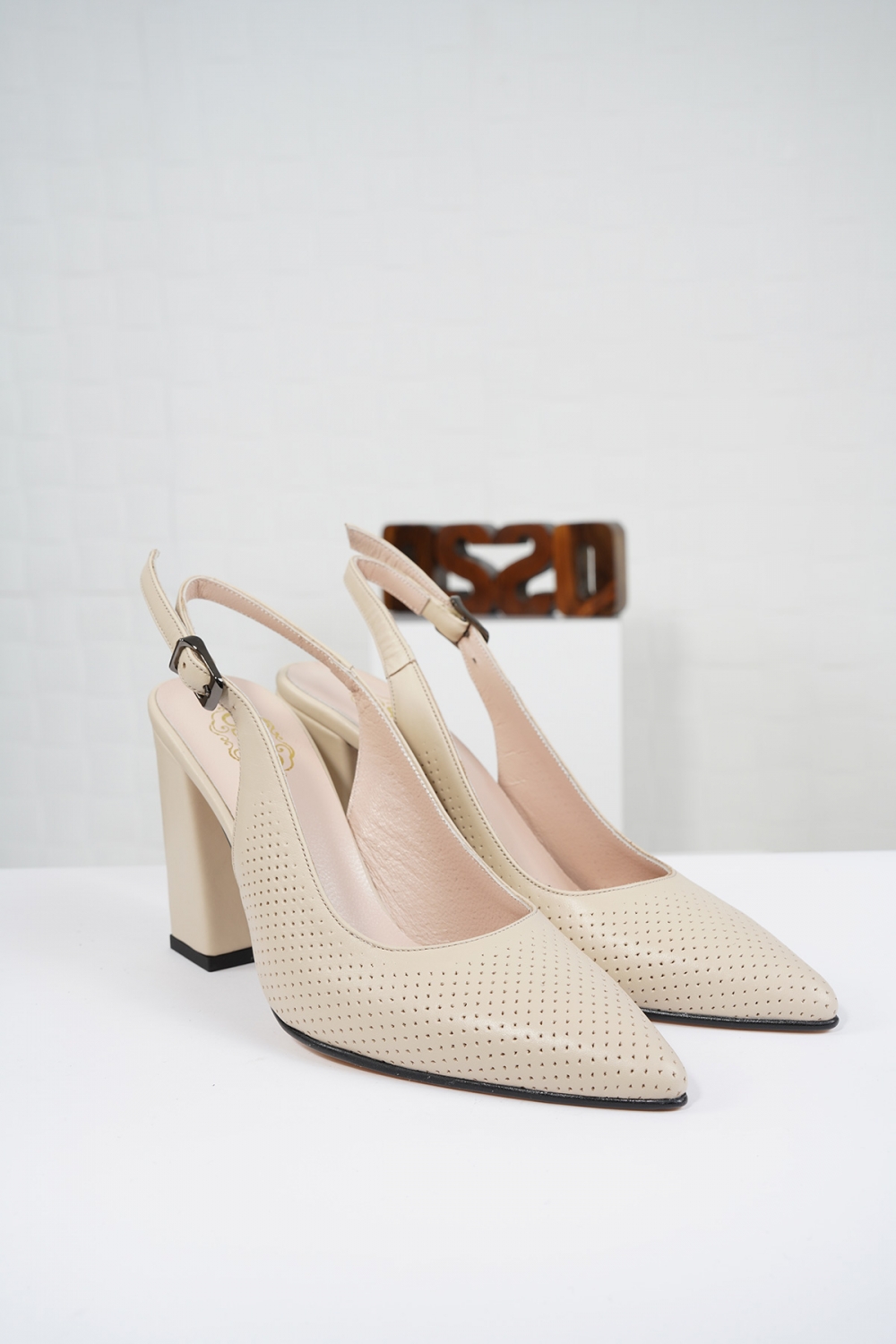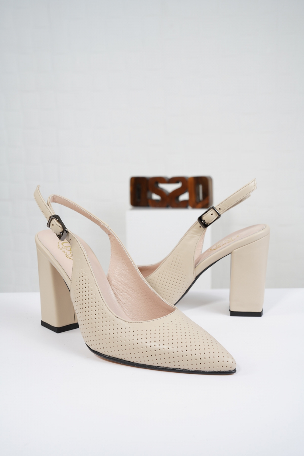 Hakiki Deri Bej Kadın Topuklu Sandalet 221127512