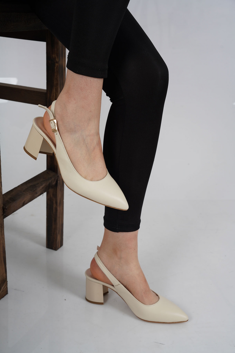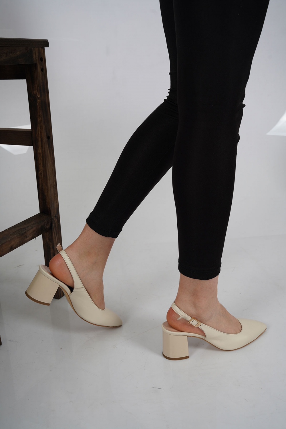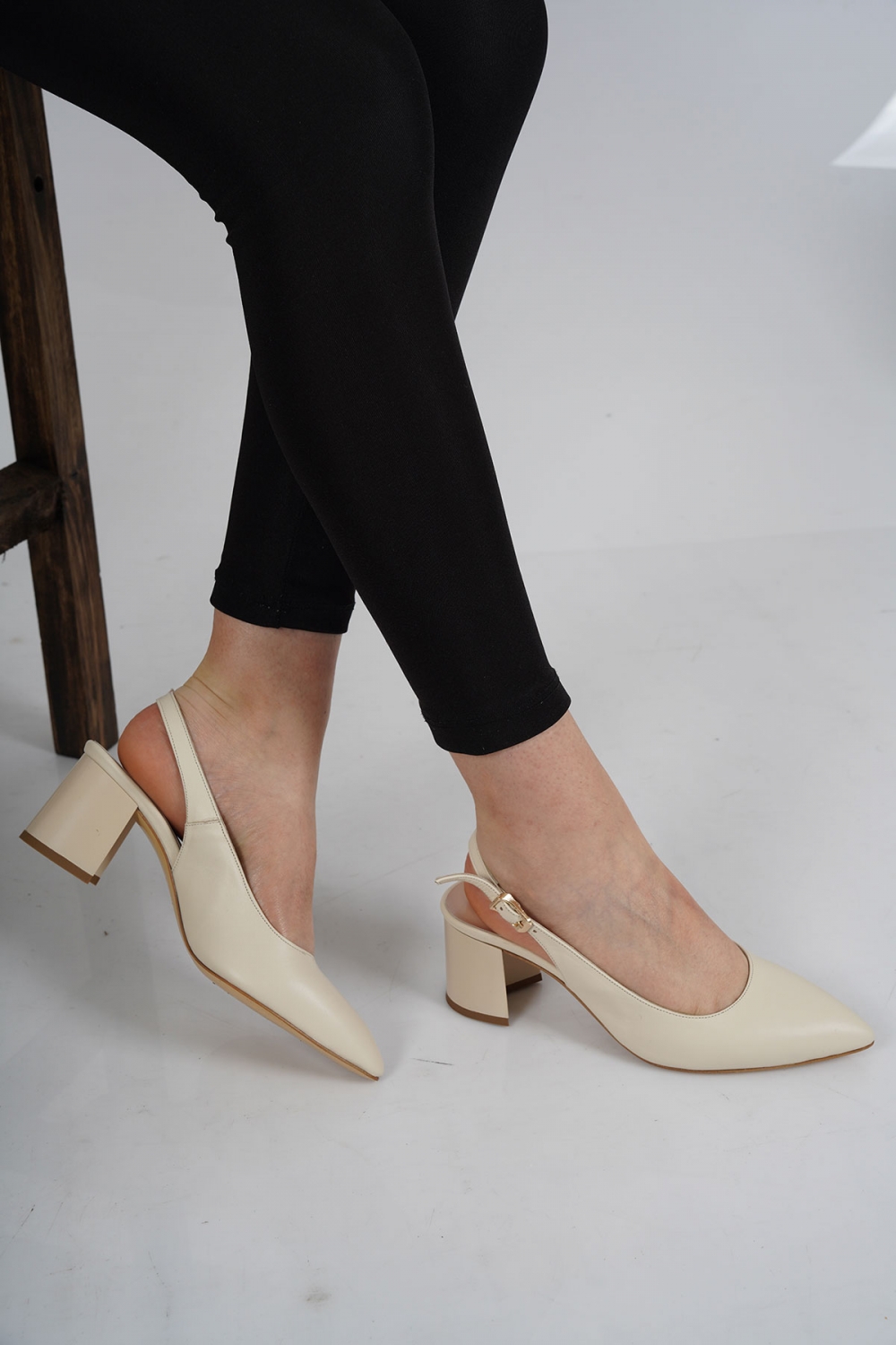 Hakiki Deri Bej Kadın Topuklu Sandalet 221127523