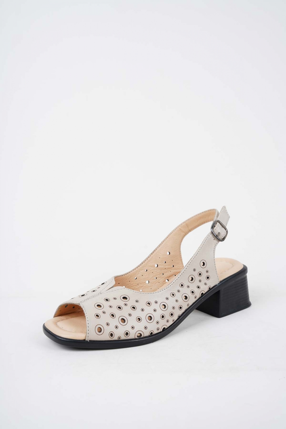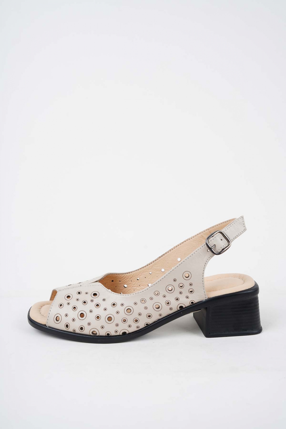 Hakiki Deri Bej Kadın Topuklu Sandalet 241189503