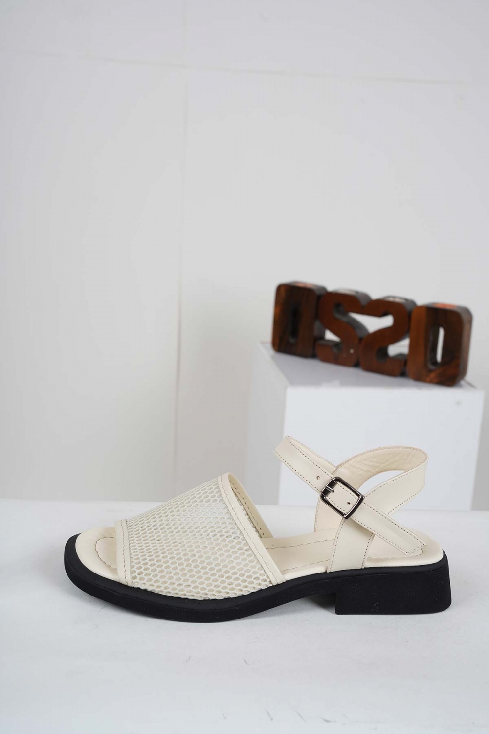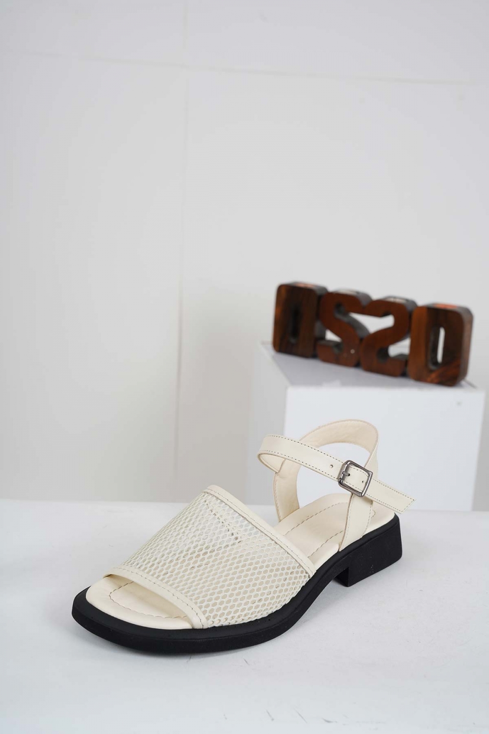 Hakiki Deri Bej Kadın Topuklu Sandalet 241229518
