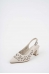 Hakiki Deri Beyaz-Beyaz Baskılı Kadın Topuklu Sandalet 261105506