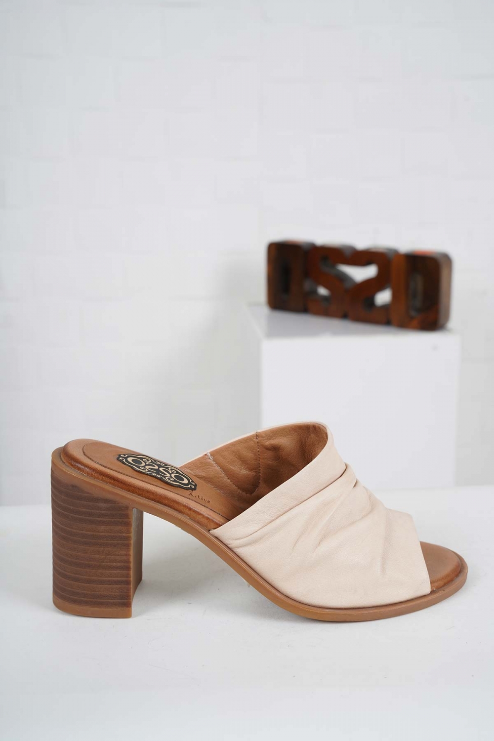 Hakiki Deri Bej Kadın Topuklu Terlik 241126605