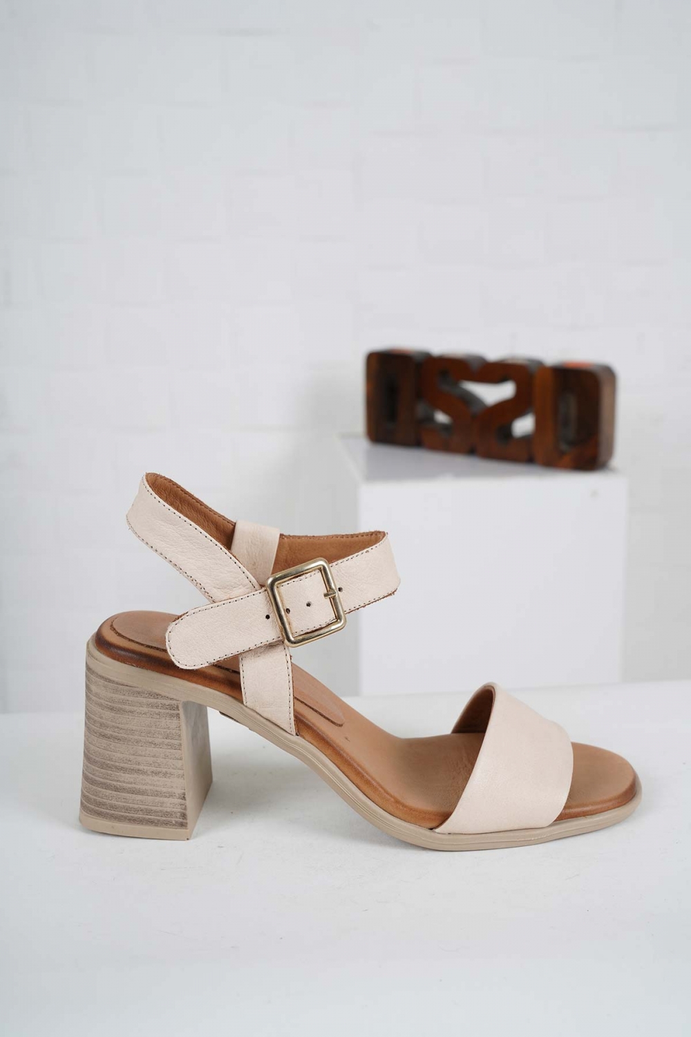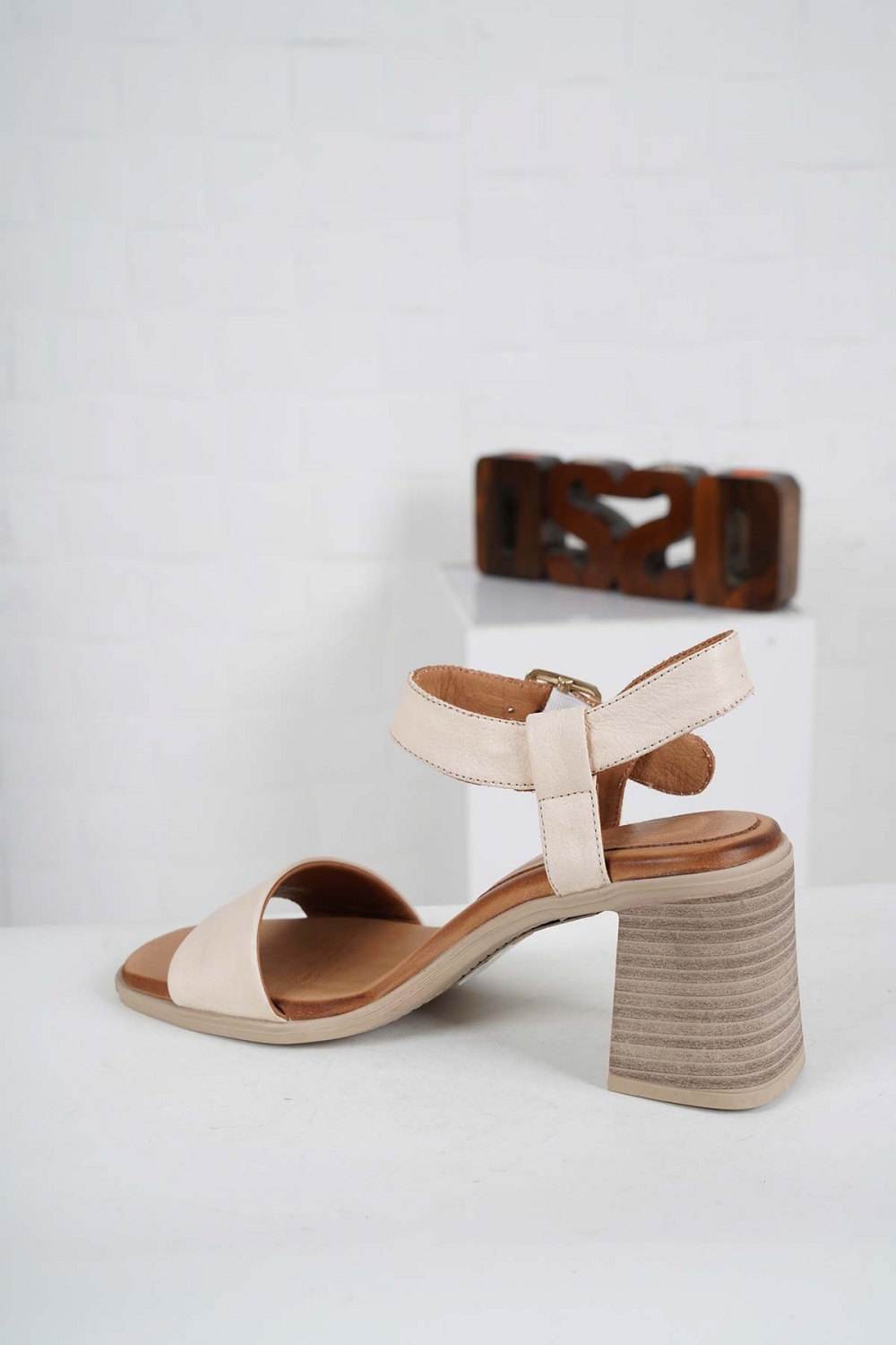 Hakiki Deri Bej Kadın Yüksek Topuklu Sandalet 241126514