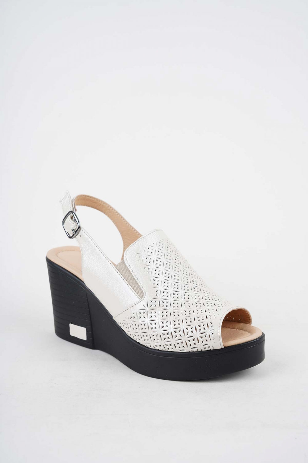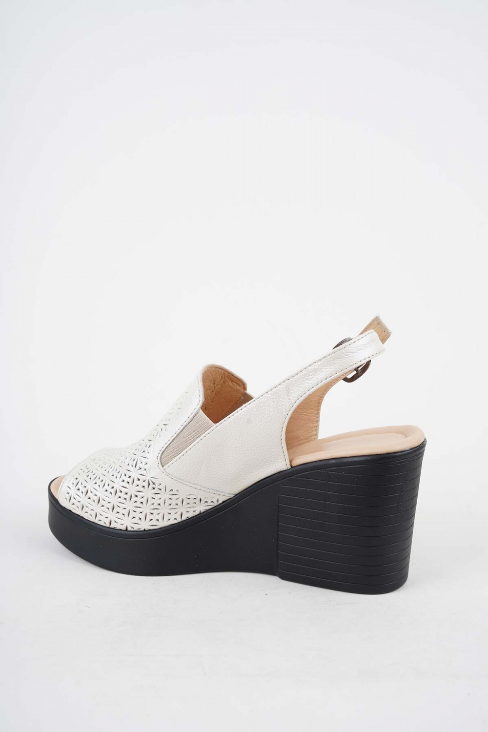 Hakiki Deri Bej Sedef Kadın Dolgu Topuklu Sandalet 251189507