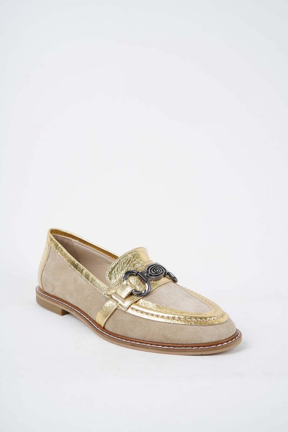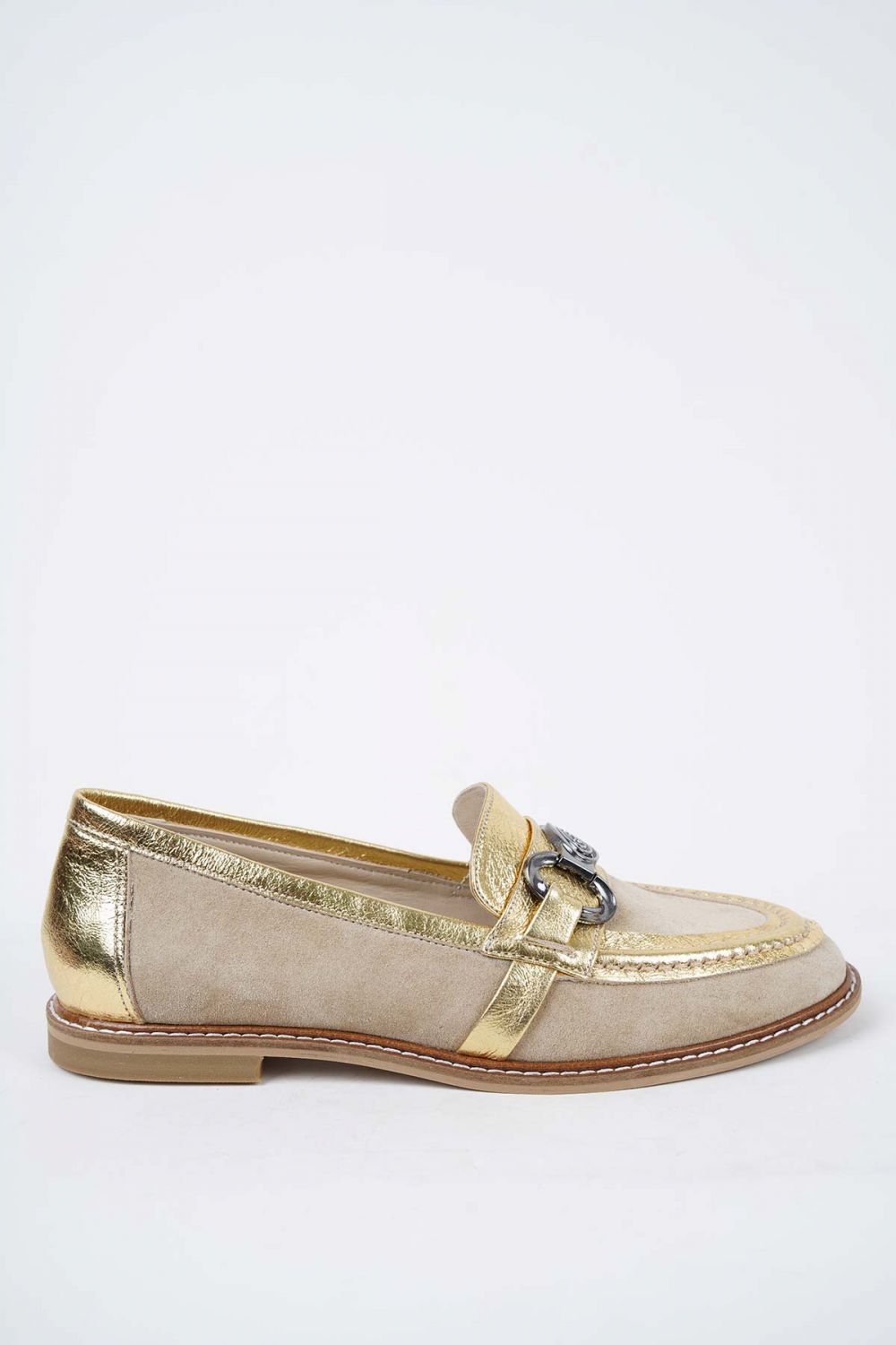 Hakiki Deri Bej Süet-Altın Kadın Casual Ayakkabı 251127101
