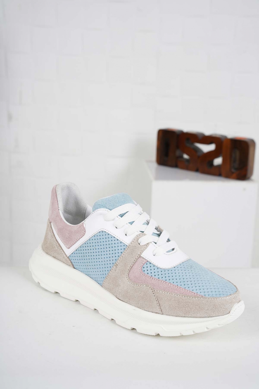 Hakiki Deri Bej Süet-B.Mavi Süet-Pudra Süet-Beyaz Kadın Sneaker Ayakkabı 241218107