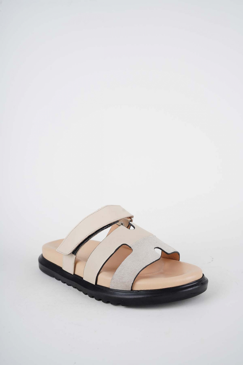 Hakiki Deri Bej Süet-Bej Kadın Düz Terlik 261162601