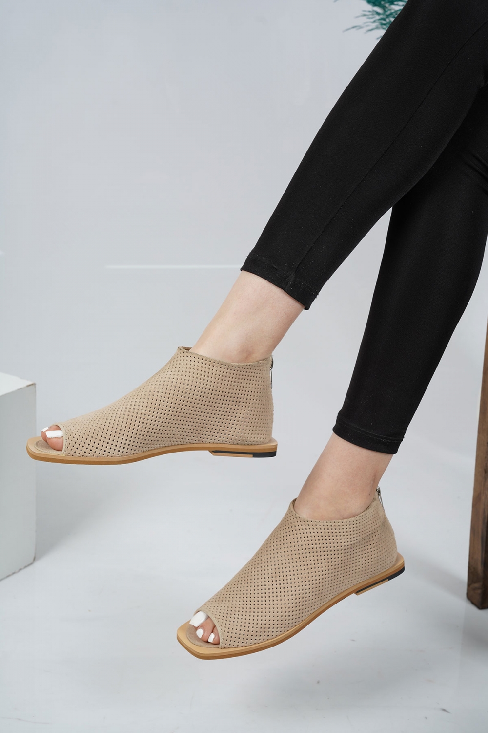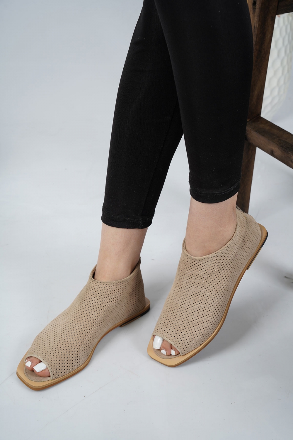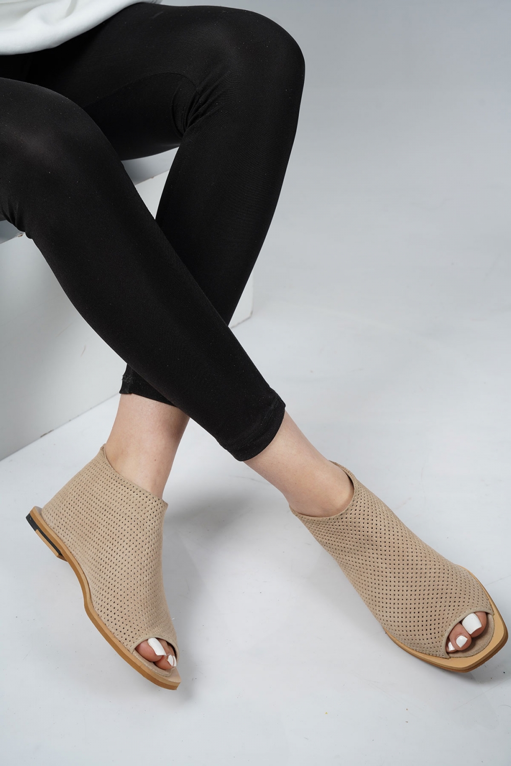 Hakiki Deri Bej Süet Kadın Burnu Açık Bot 221110201