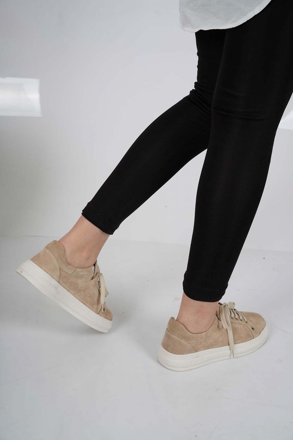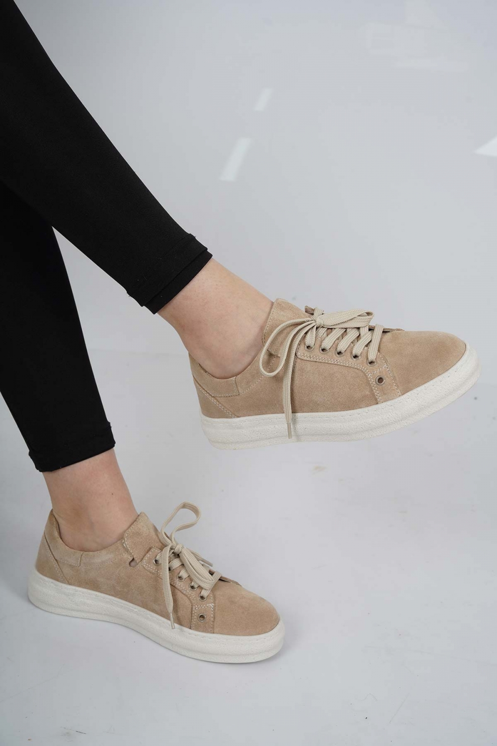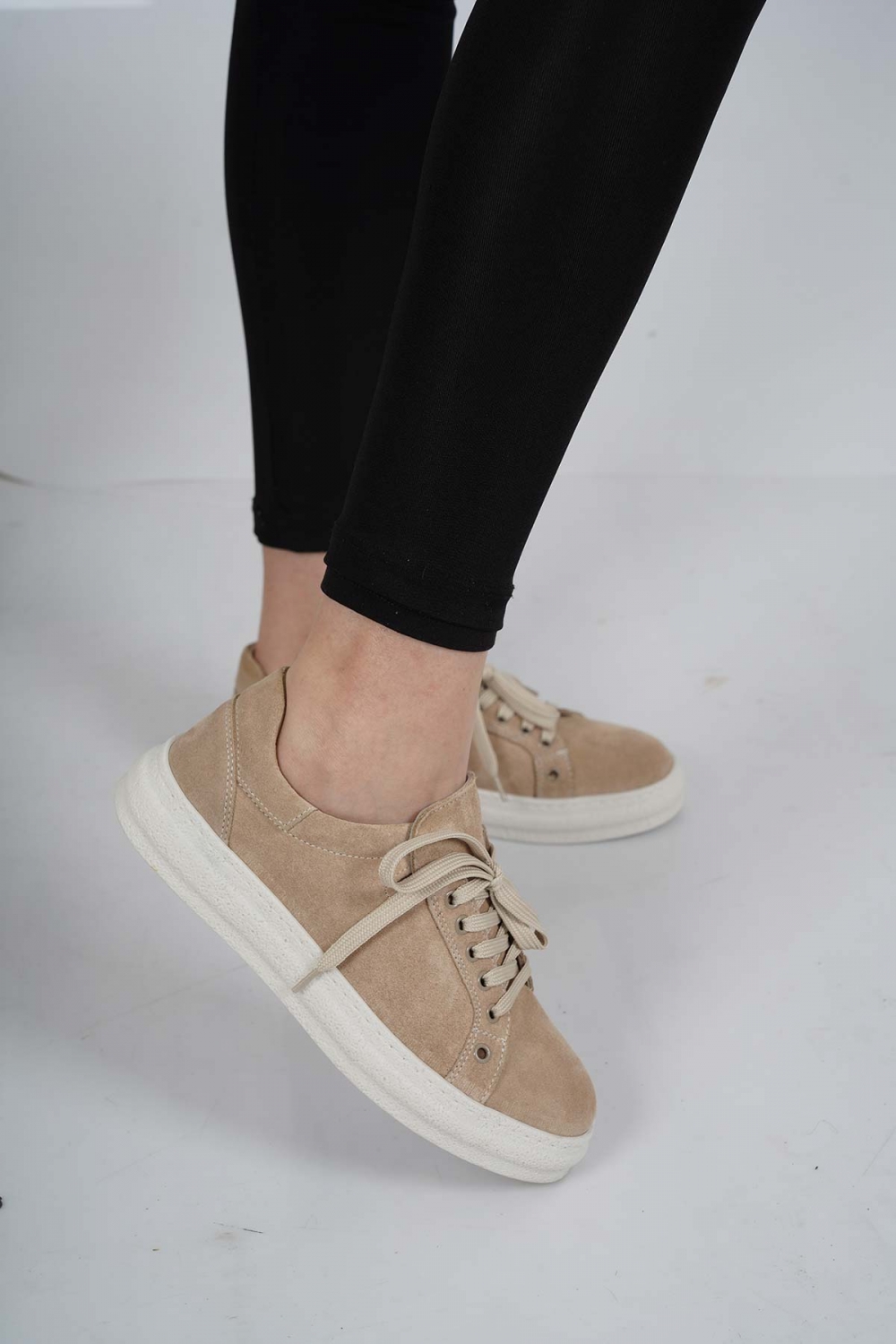 Hakiki Deri Bej Süet Kadın Casual Ayakkabı 231108105
