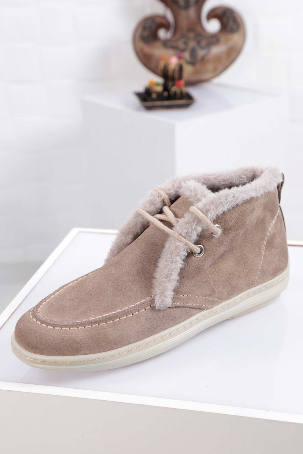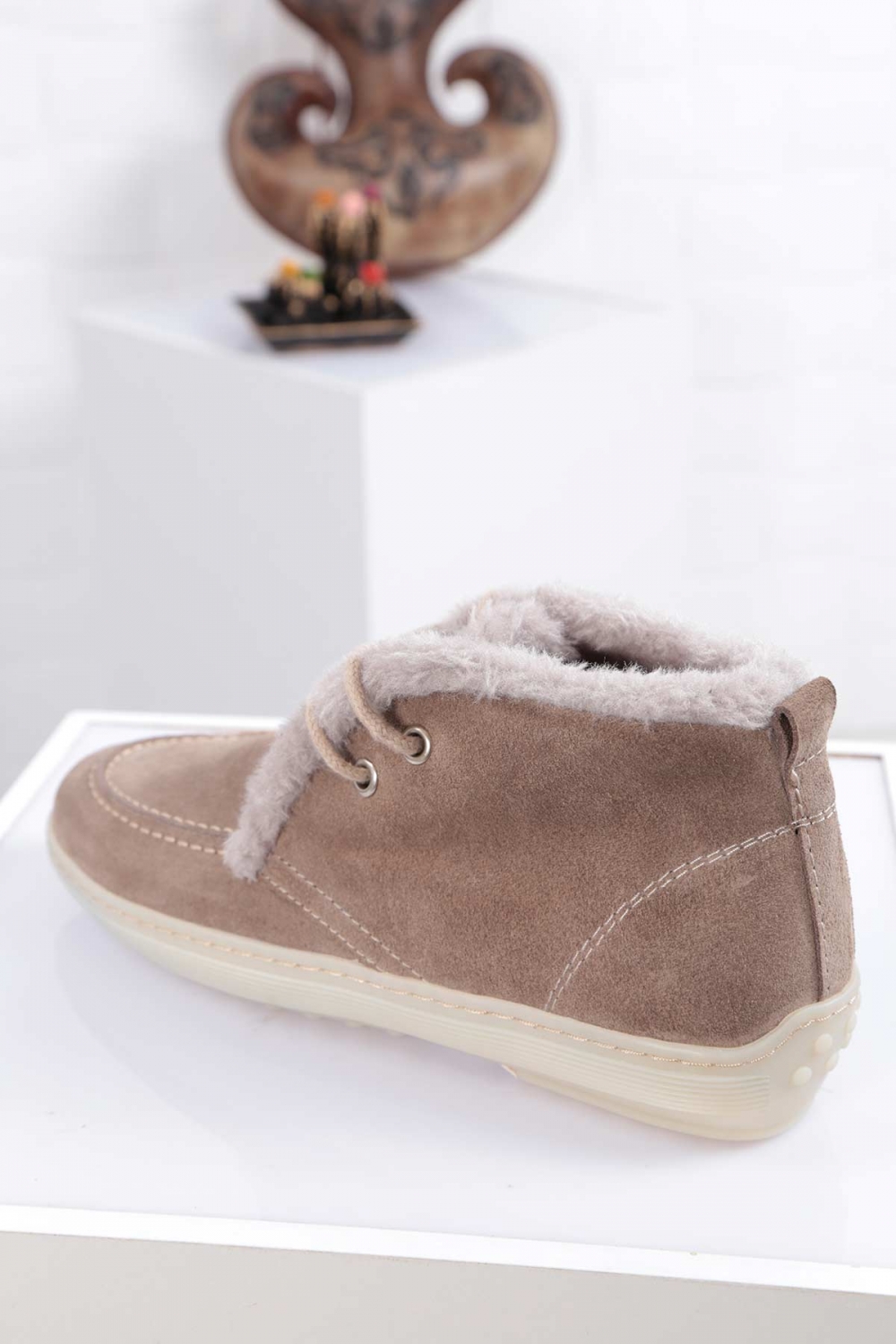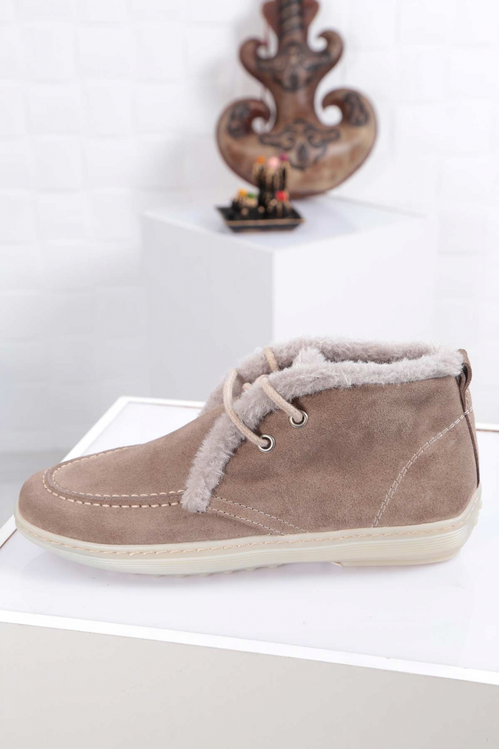 Hakiki Deri Bej Süet Kadın Kısa Bot 212209201