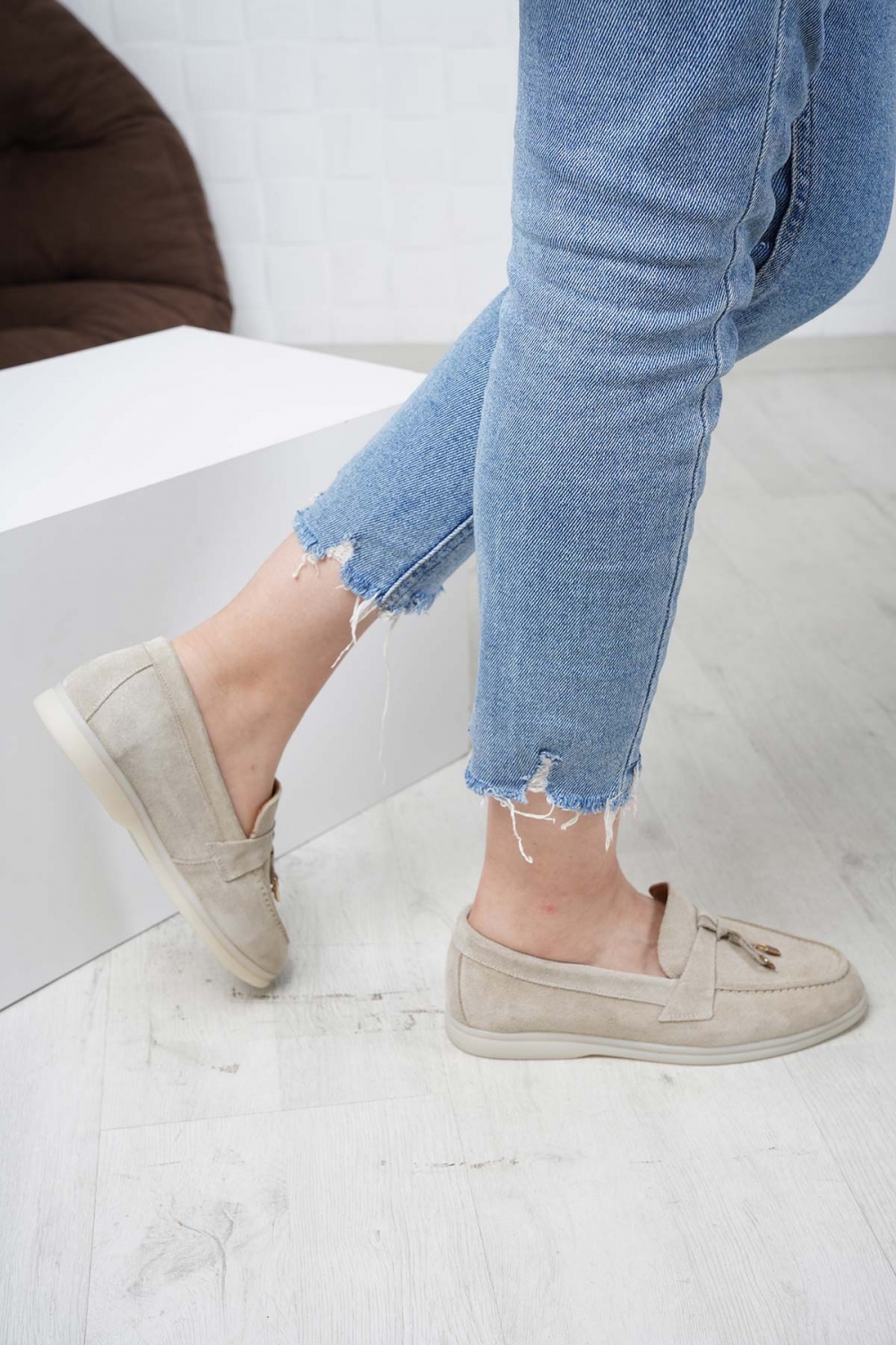 Hakiki Deri Bej Süet Kadın Makosen Ayakkabı 231110103