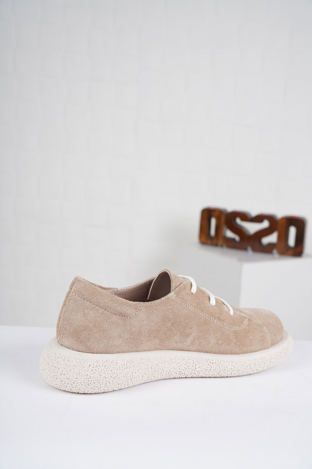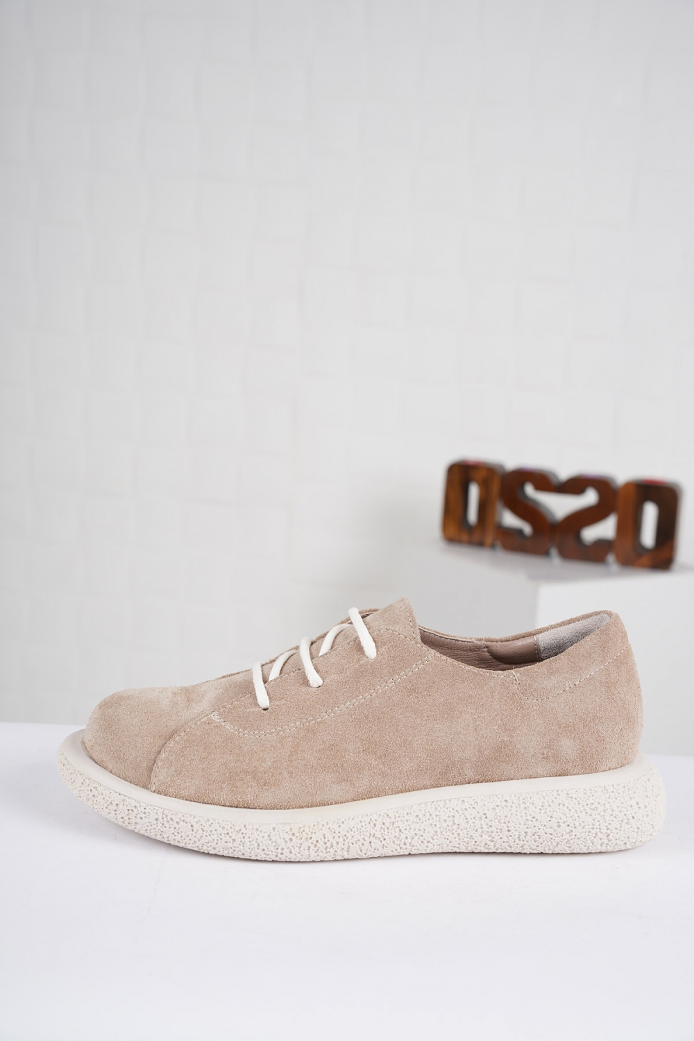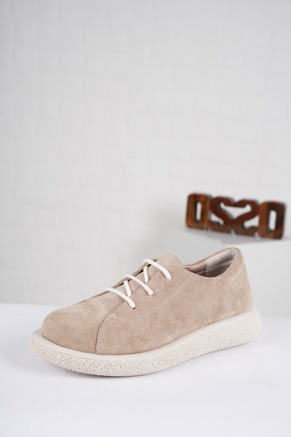 Hakiki Deri Bej Süet Kadın Sneaker Ayakkabı 222135102