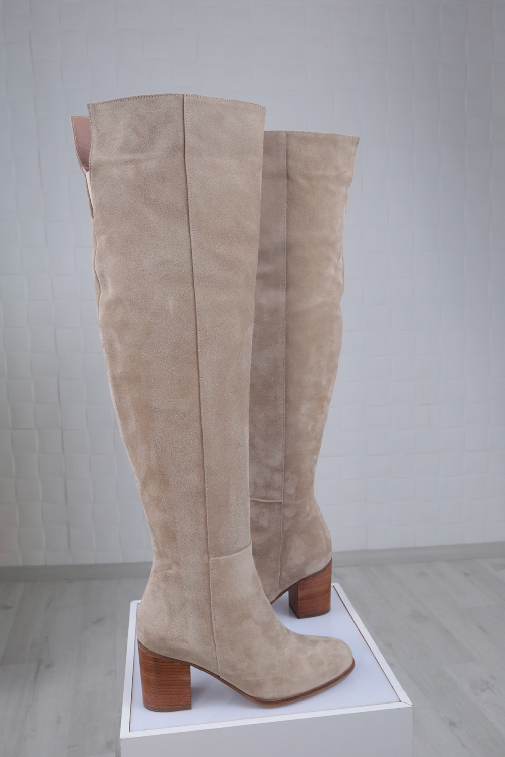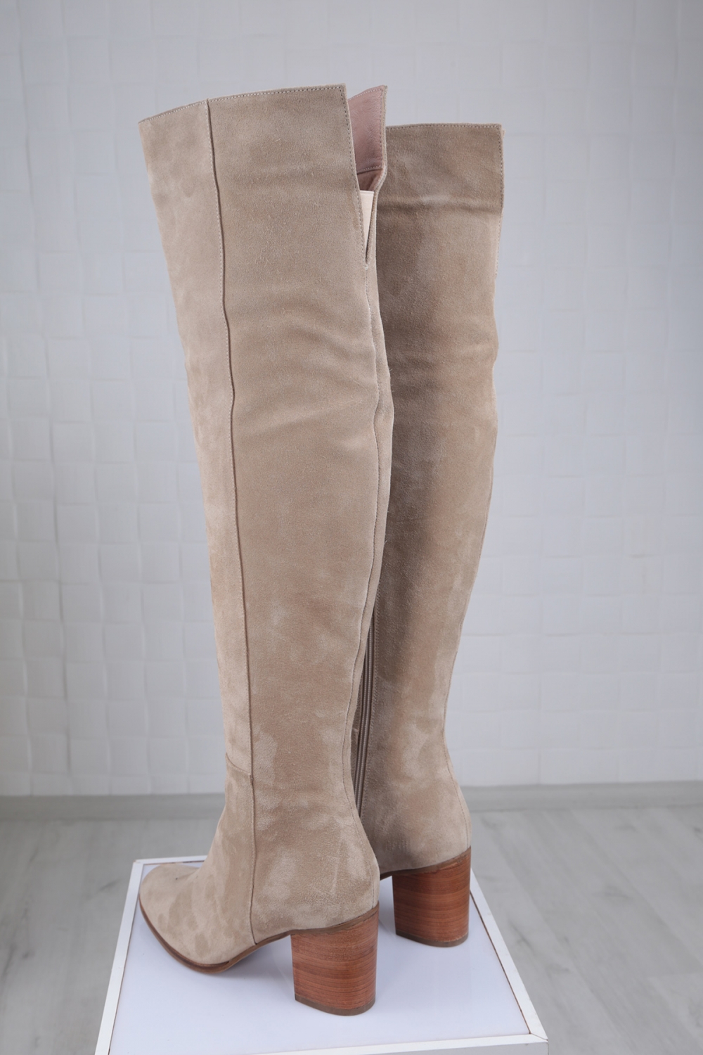 Hakiki Deri Bej Süet Kadın Topuklu Çizme 212110310
