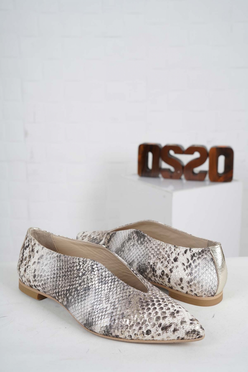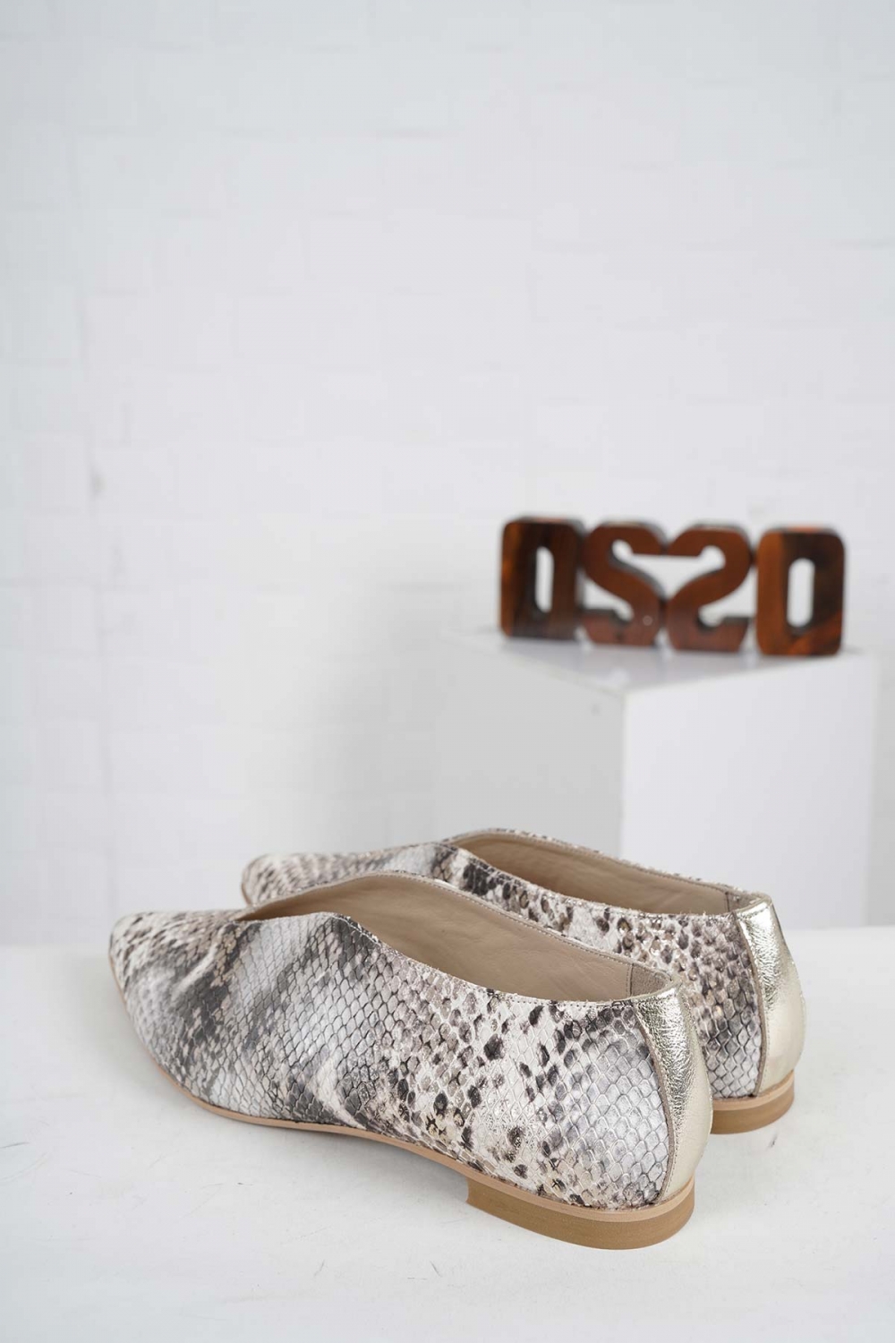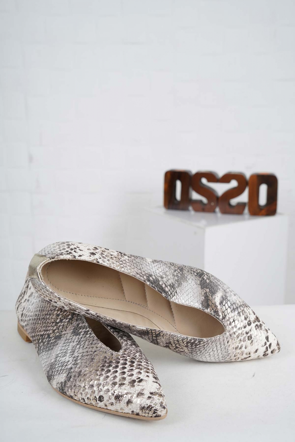 Hakiki Deri Bej Yılan Kadın Babet Ayakkabı 242127116