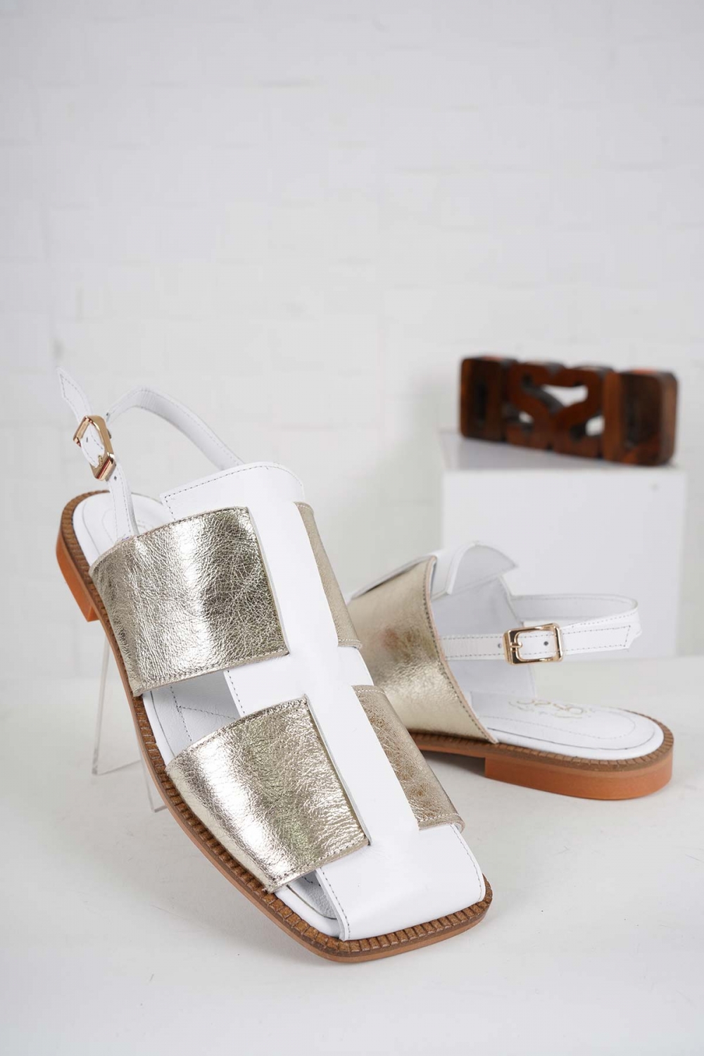 Hakiki Deri Beyaz-Altın Kadın Burun Kapalı Sandalet 241127509