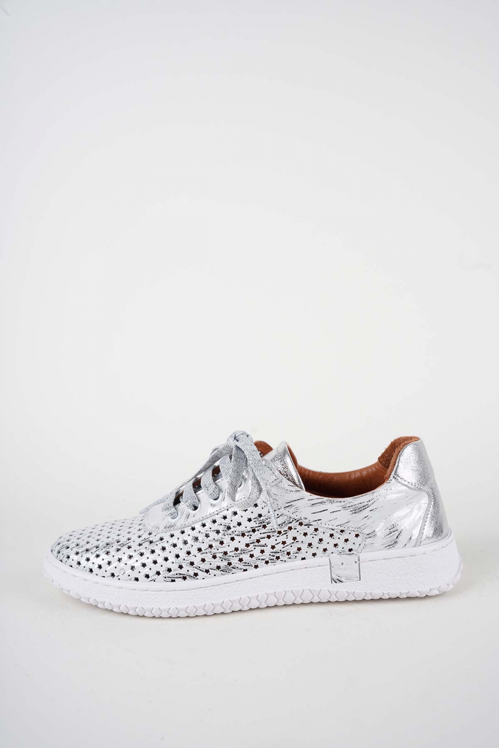 Hakiki Deri Beyaz Baskılı-Gümüş Kadın Casual Ayakkabı 261186105