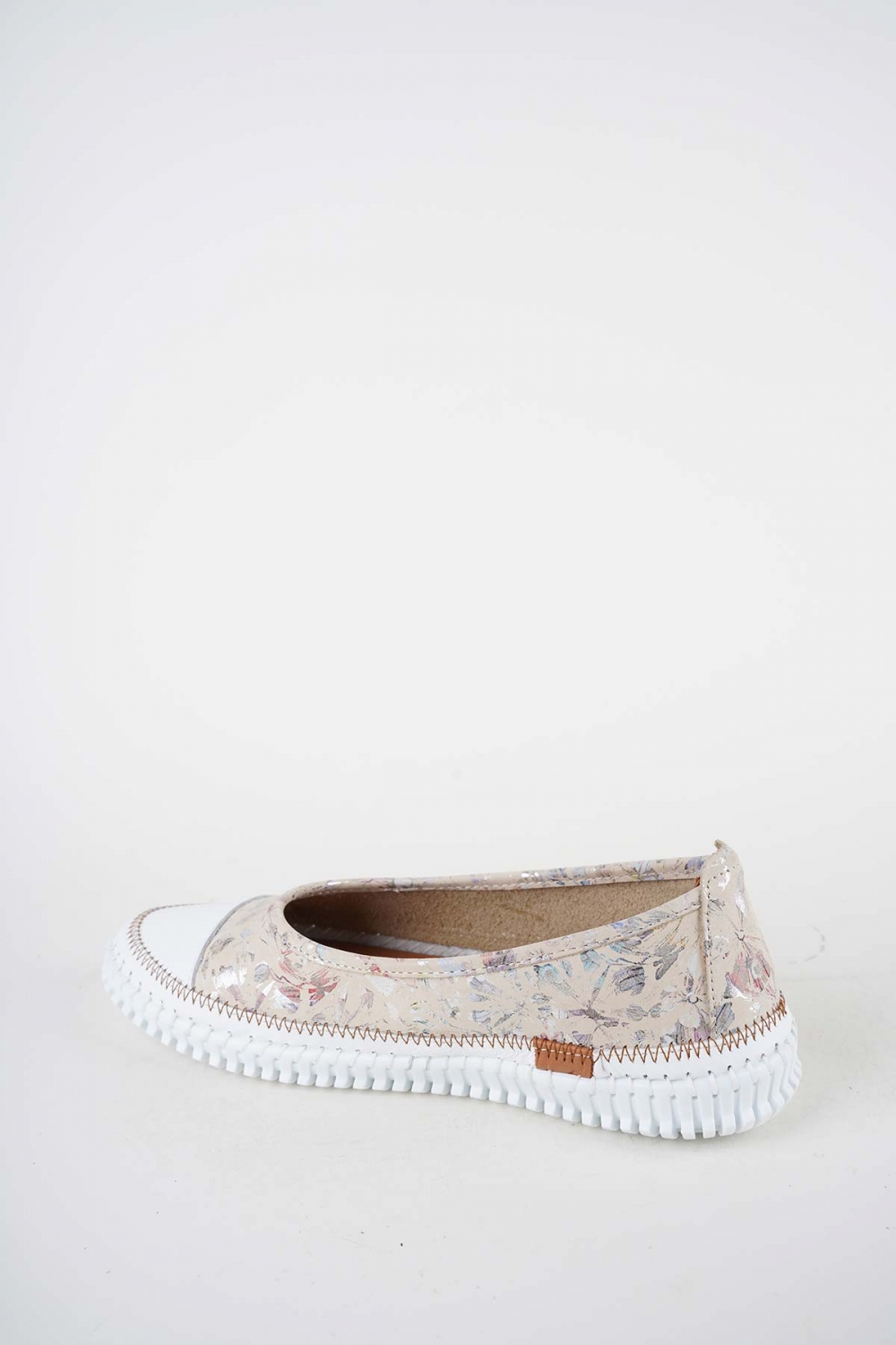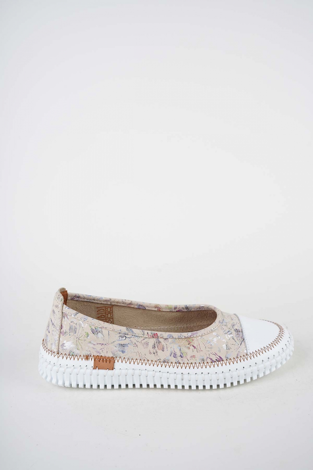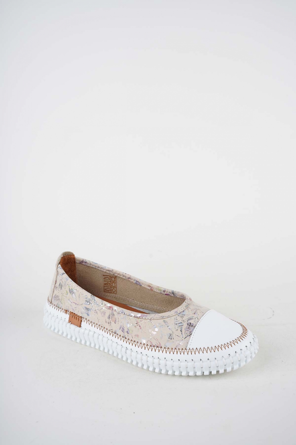 Hakiki Deri Beyaz-Bej Çiçek Kadın Comfort Ayakkabı 251220102
