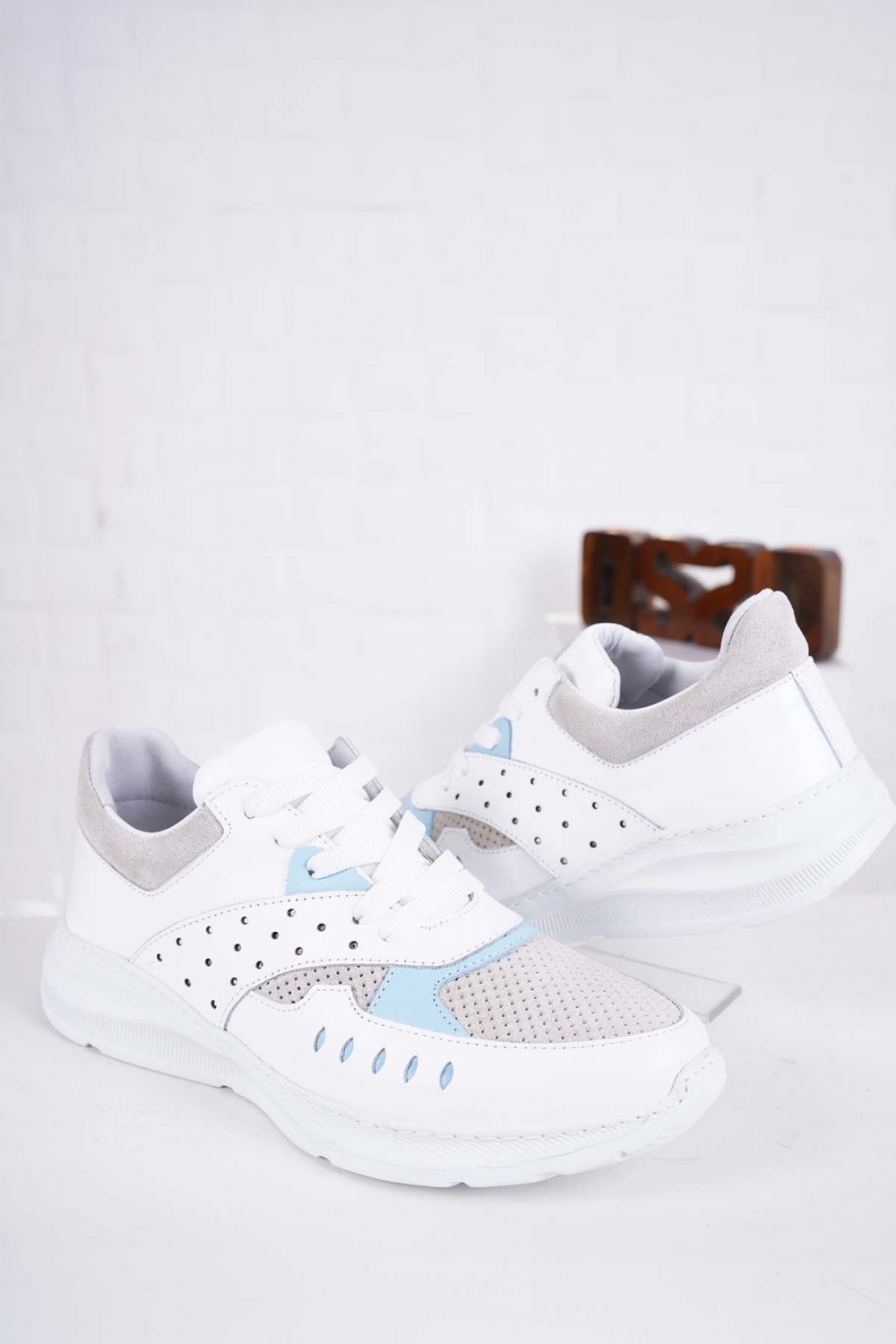 Hakiki Deri Beyaz-Bej Süet-B.Mavi Kadın Sneaker Ayakkabı 241218108