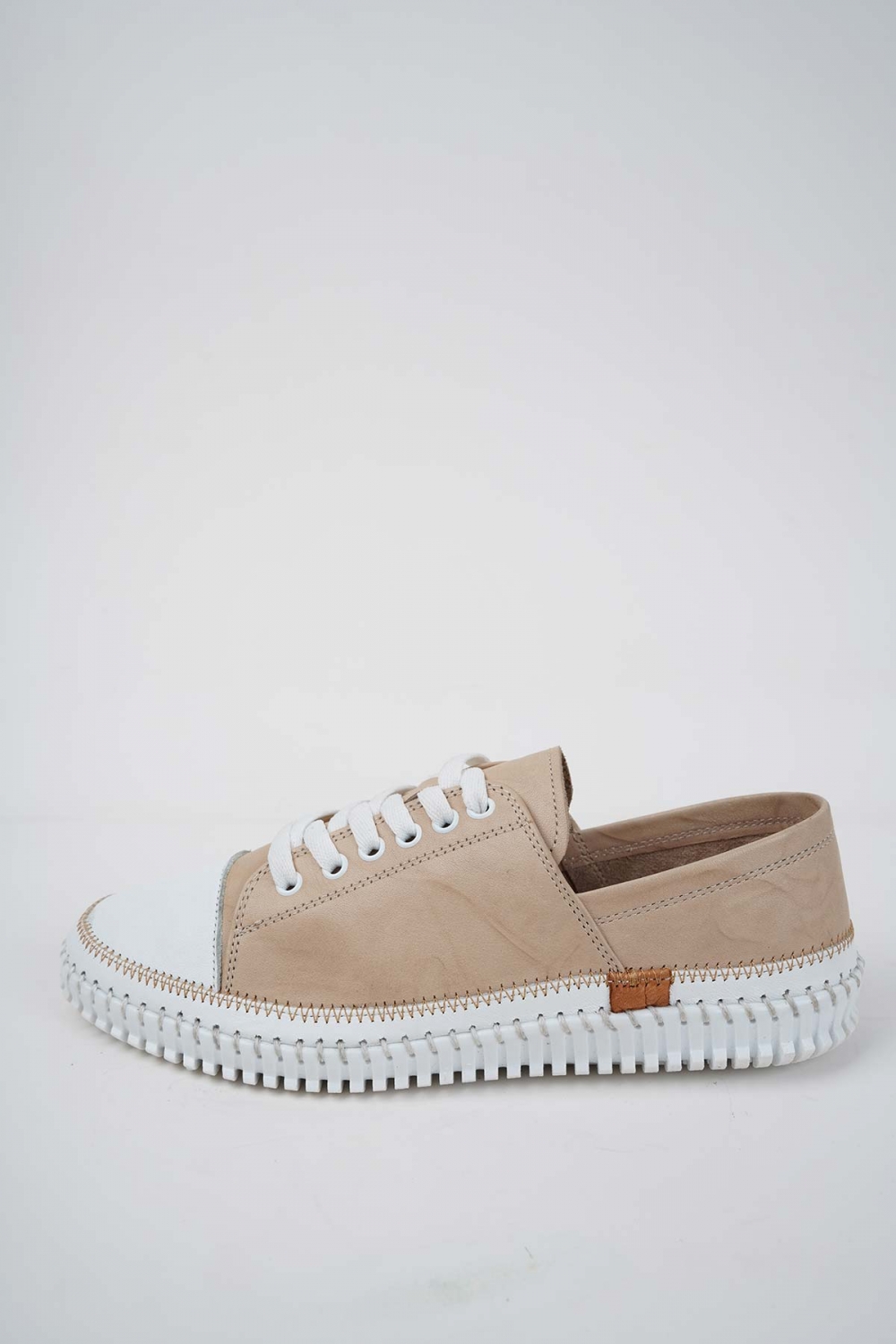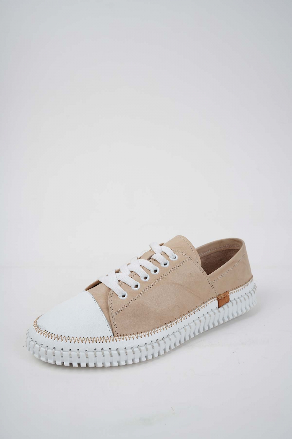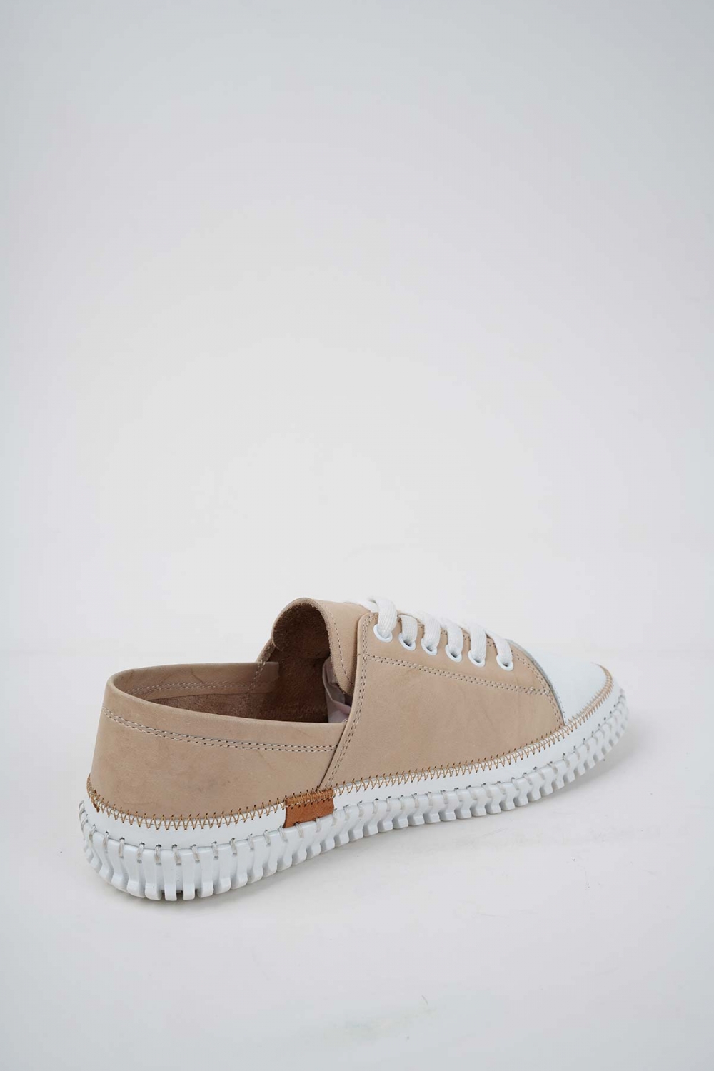 Hakiki Deri Beyaz-Bej Yıkama Kadın Comfort Ayakkabı 251220109