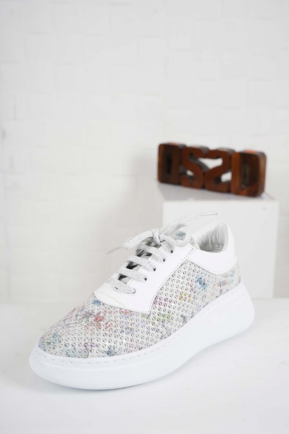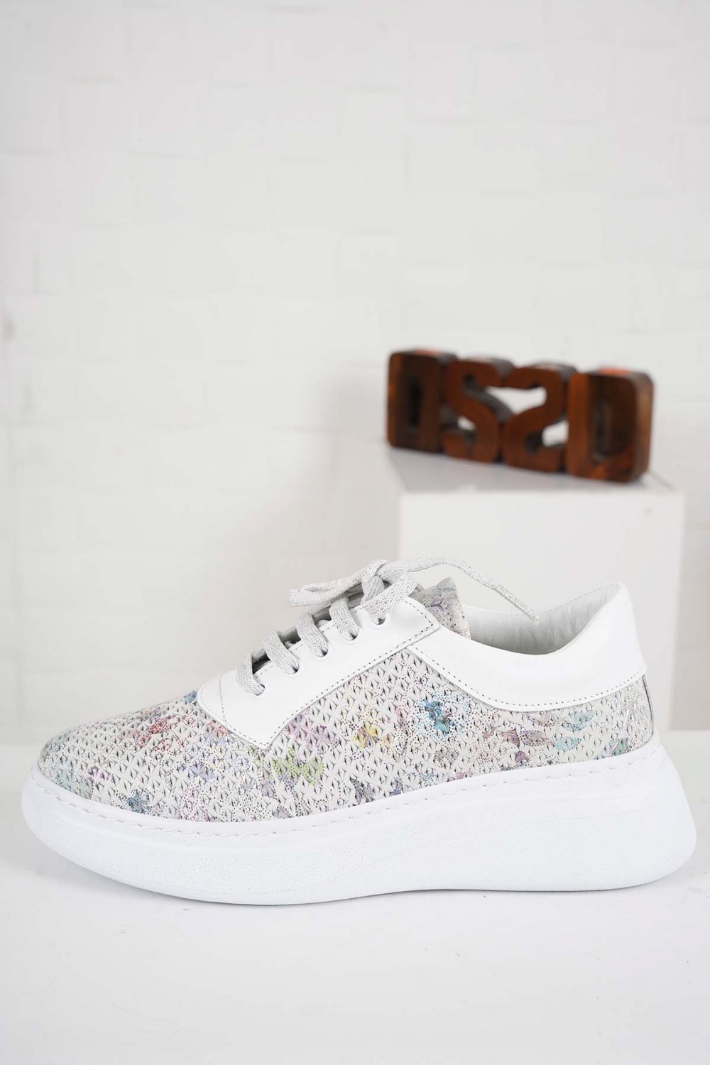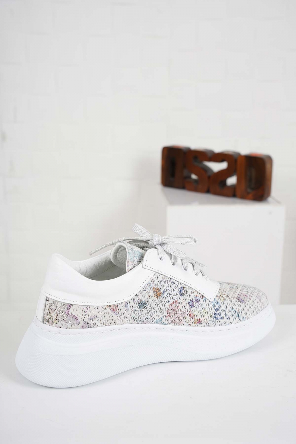 Hakiki Deri Beyaz Çiçek Baskılı-Beyaz Kadın Casual Ayakkabı 241186104