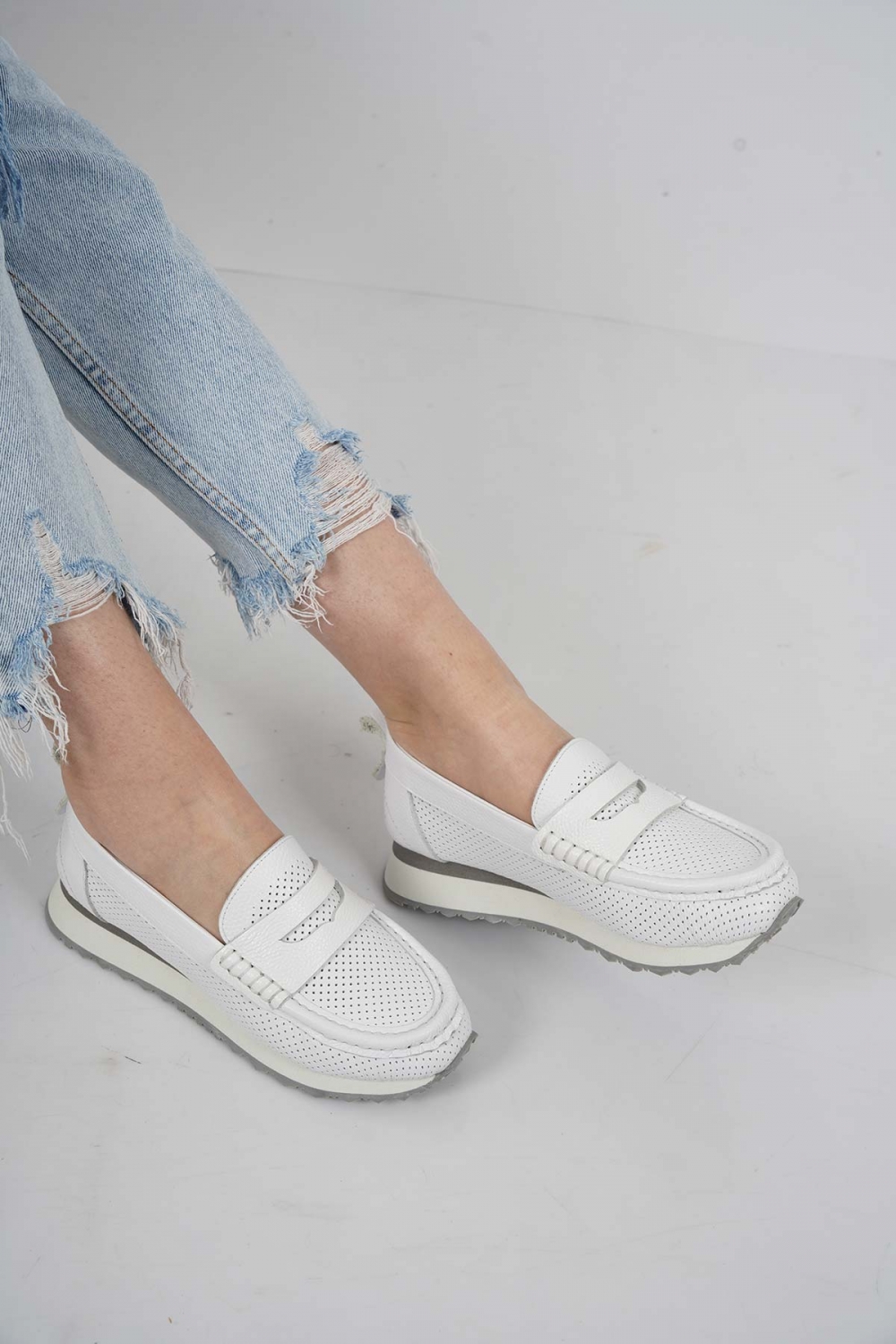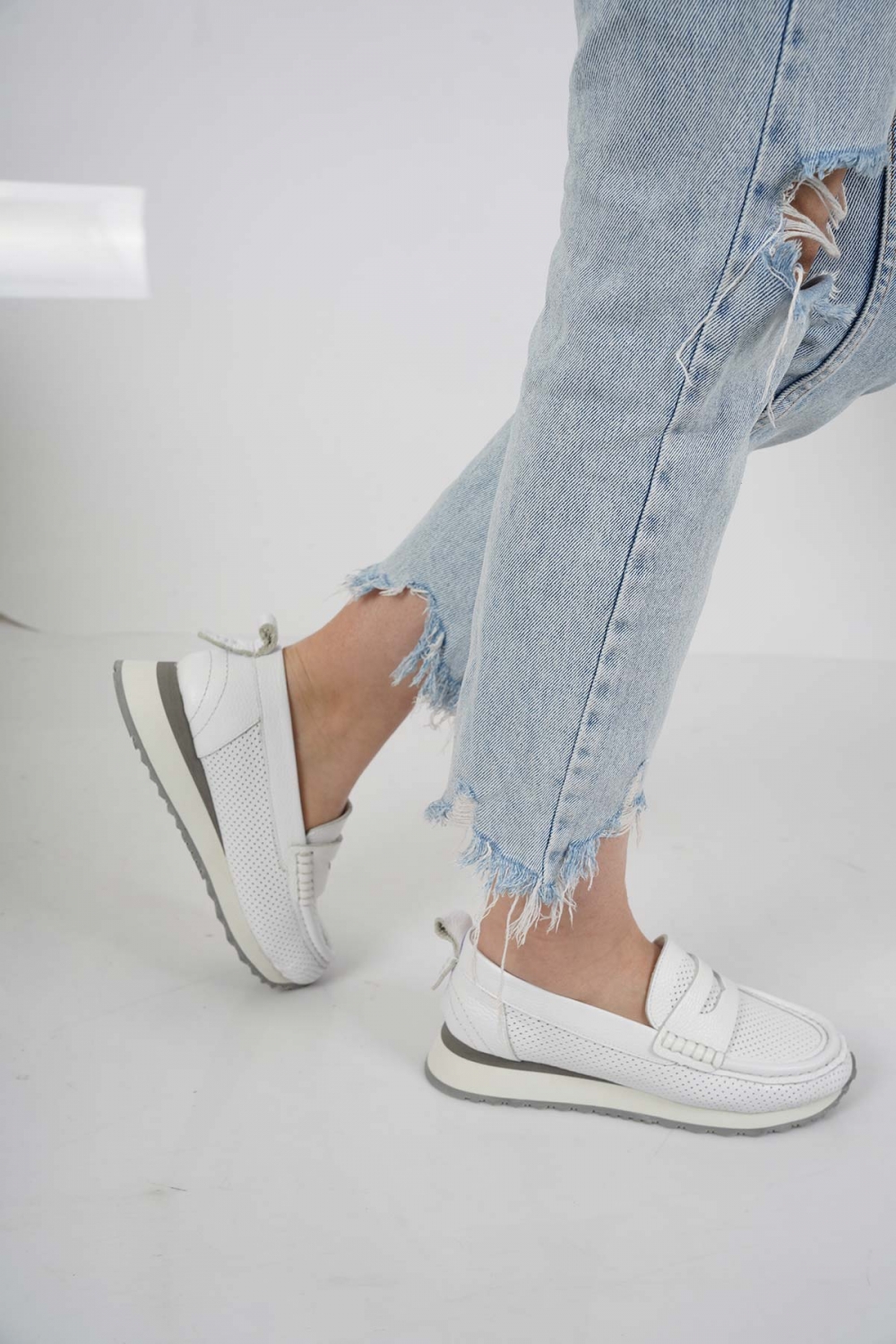 Hakiki Deri Beyaz Floter Kadın Casual Ayakkabı 221126101