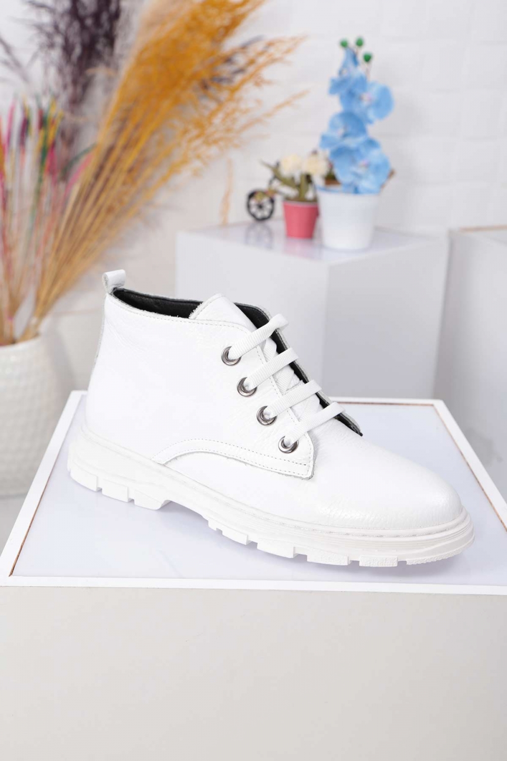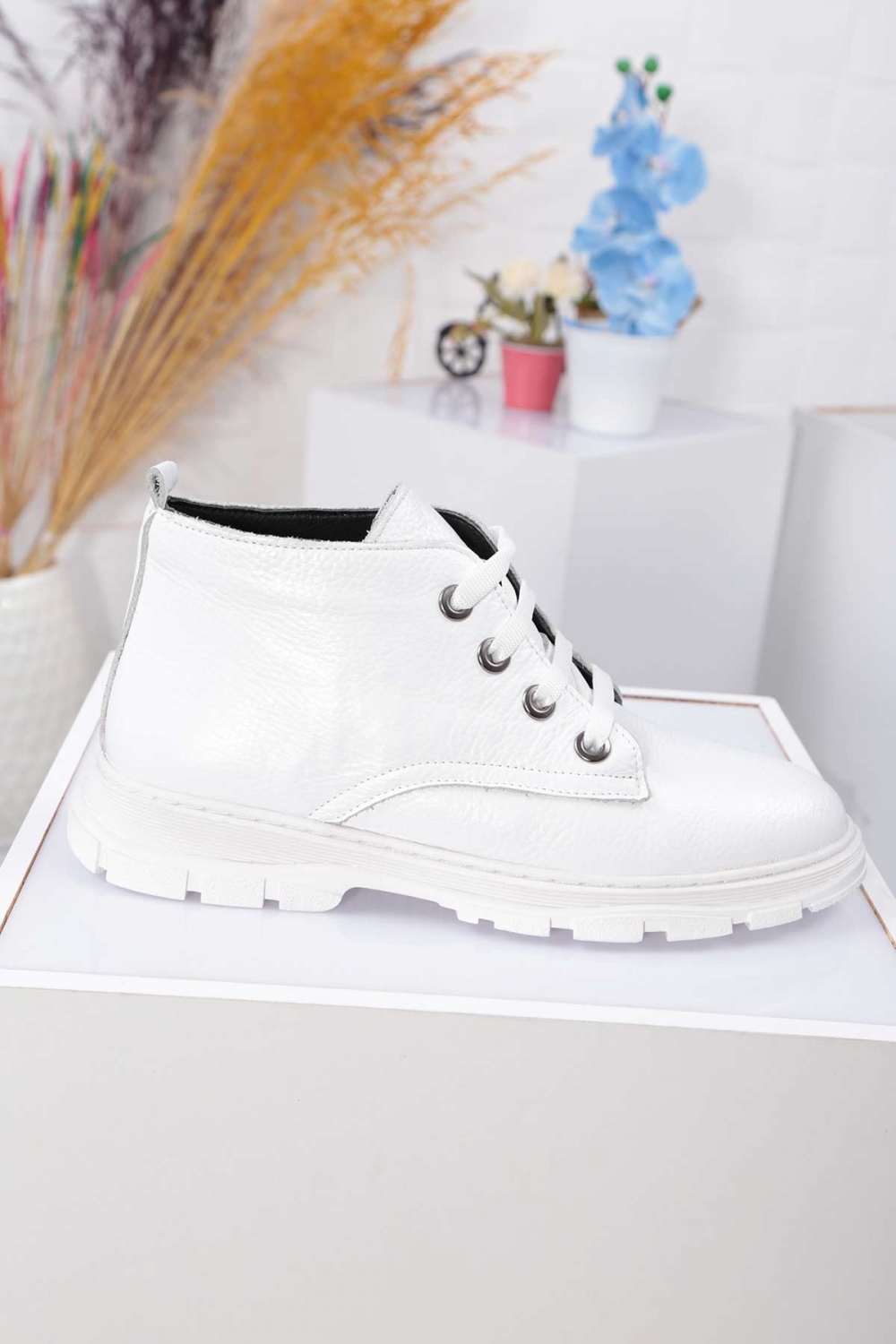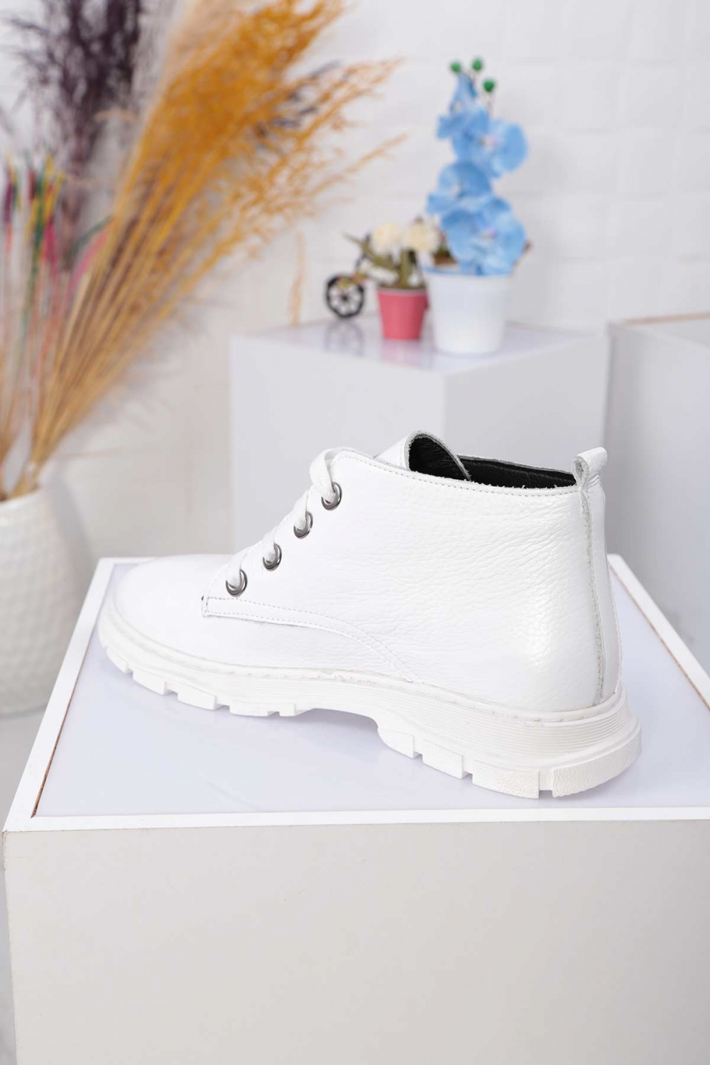 Hakiki Deri Beyaz Floter Kadın Kısa Bot 212135204