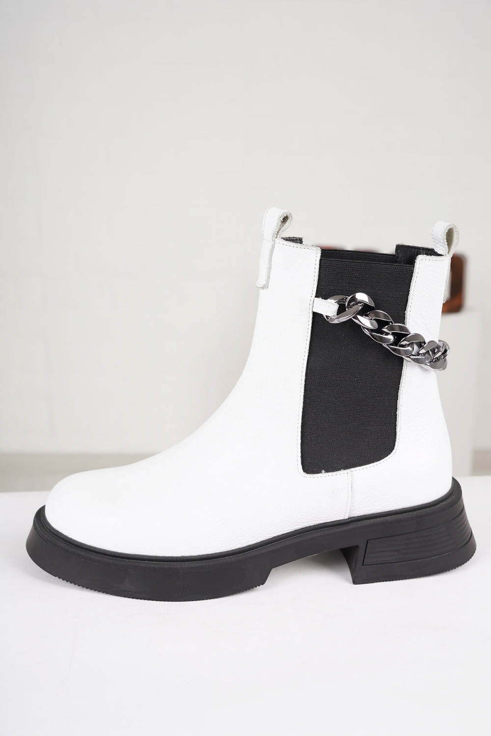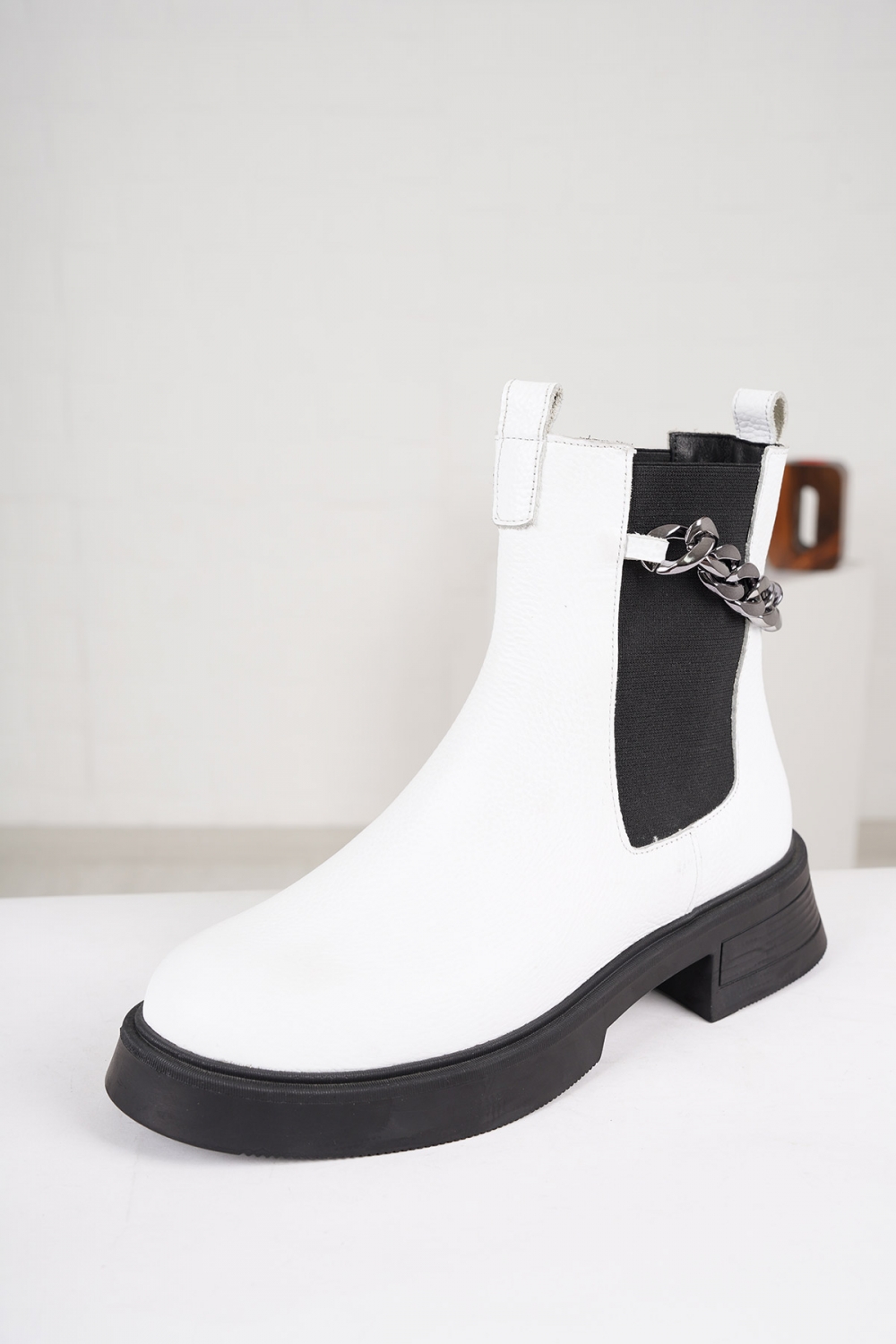 Hakiki Deri Beyaz Floter Kadın Kısa Bot 222172202
