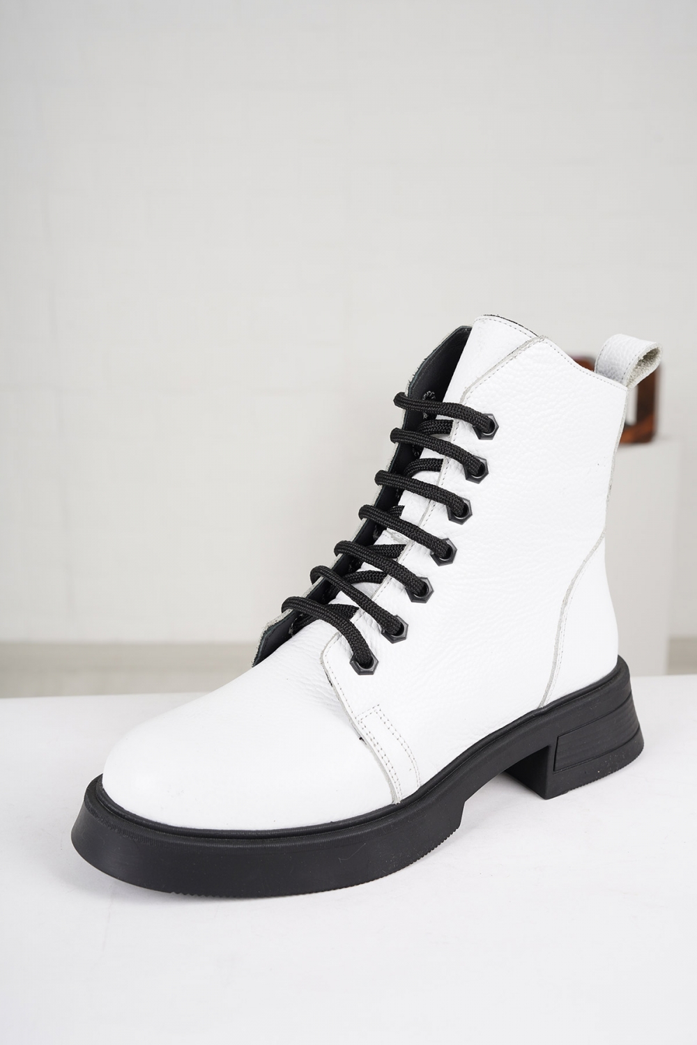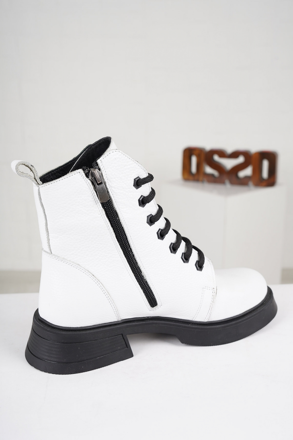 Hakiki Deri Beyaz Floter Kadın Kısa Bot 222172203