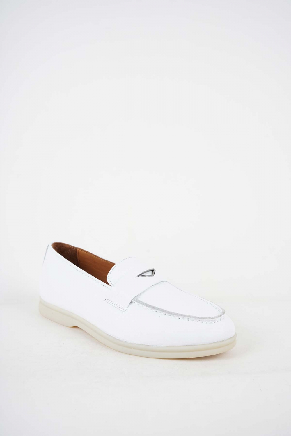 Hakiki Deri Beyaz Floter Kadın Loafer Ayakkabı 241110103