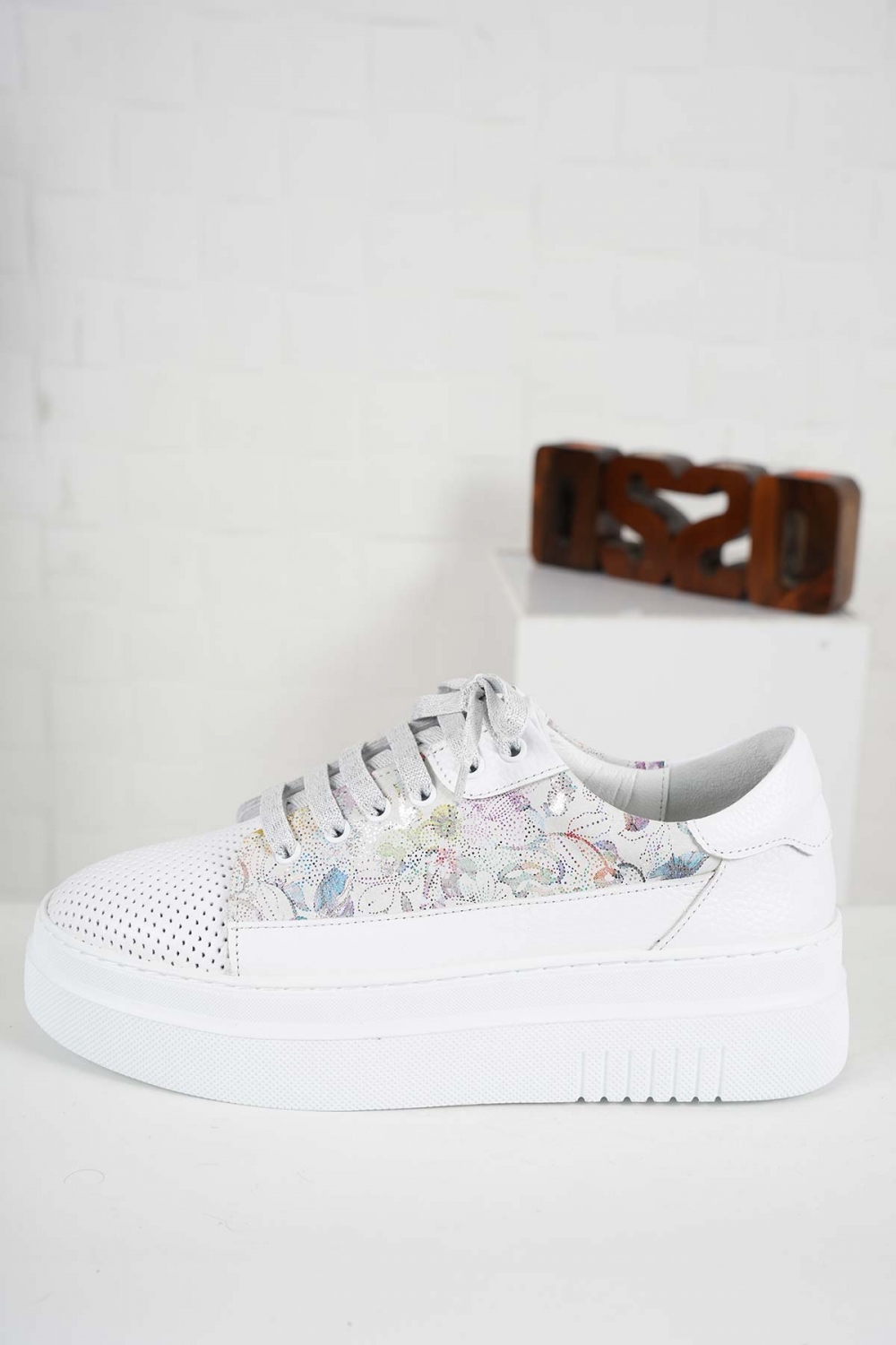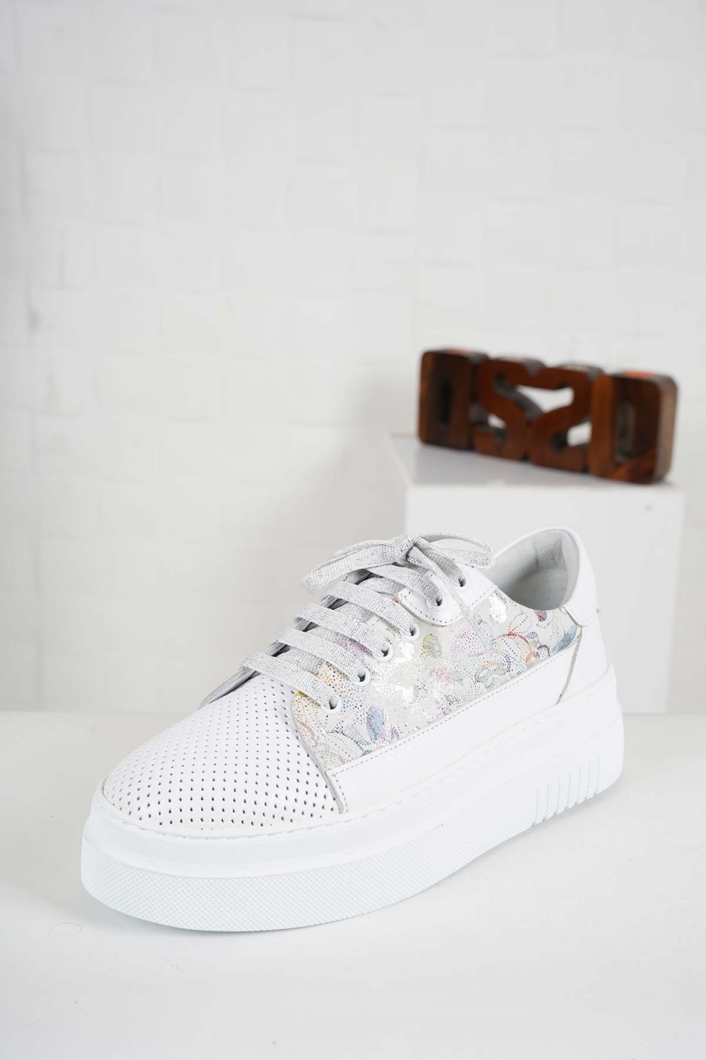 Hakiki Deri Beyaz Flt.-Beyaz Çiçekli Kadın Casual Ayakkabı 241186109